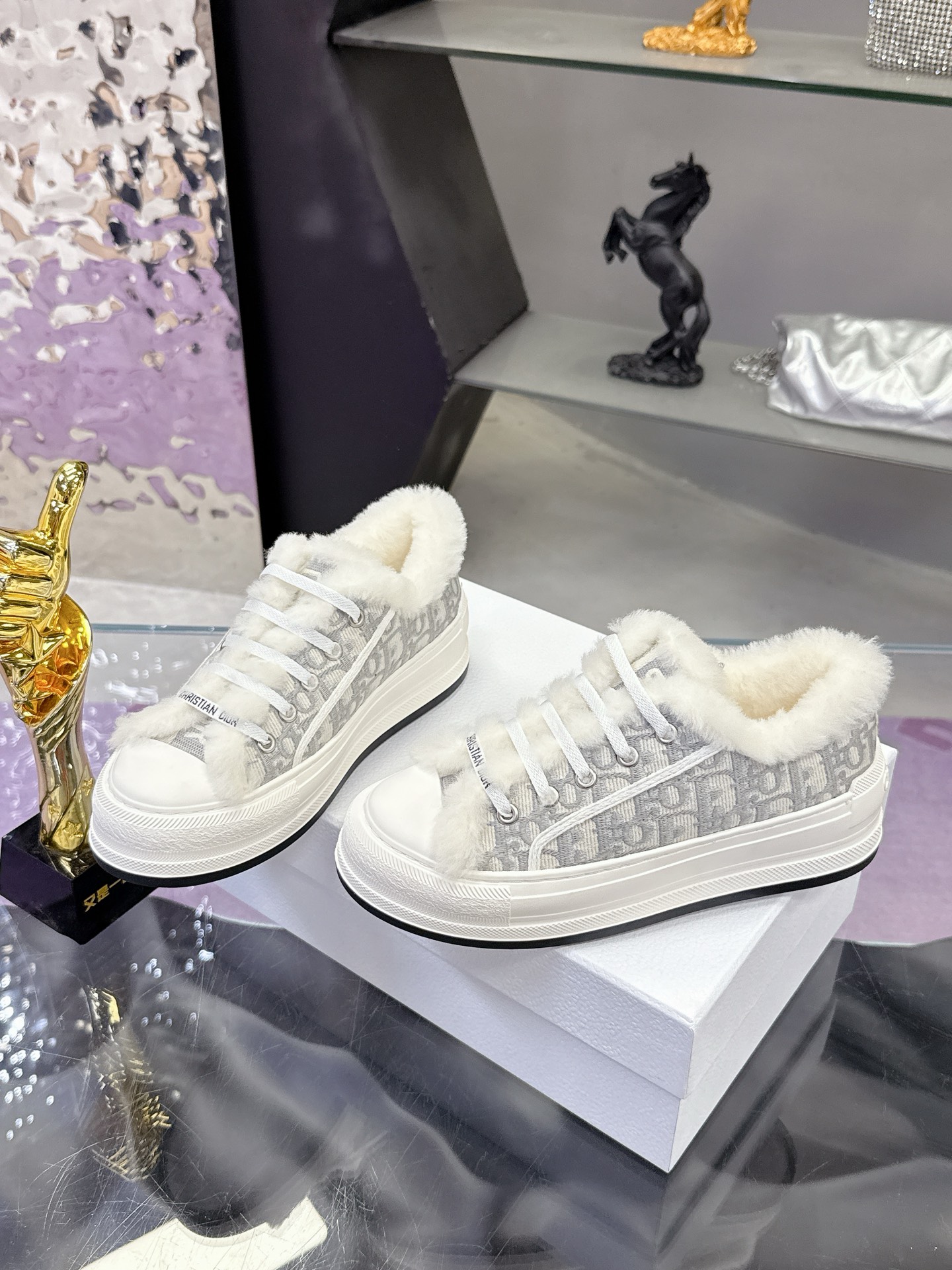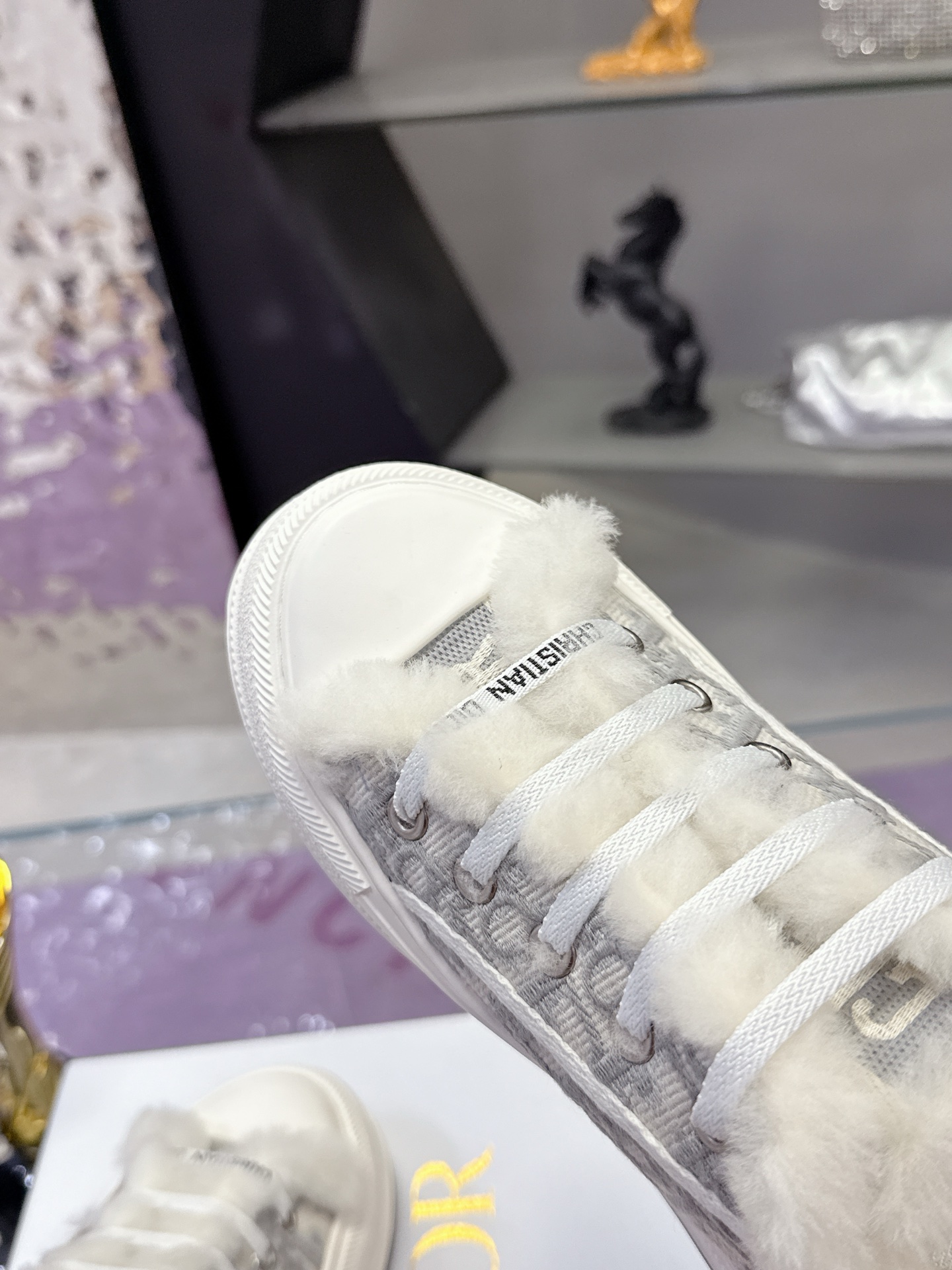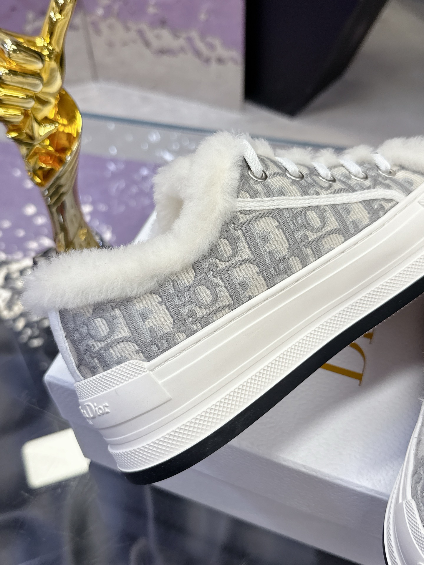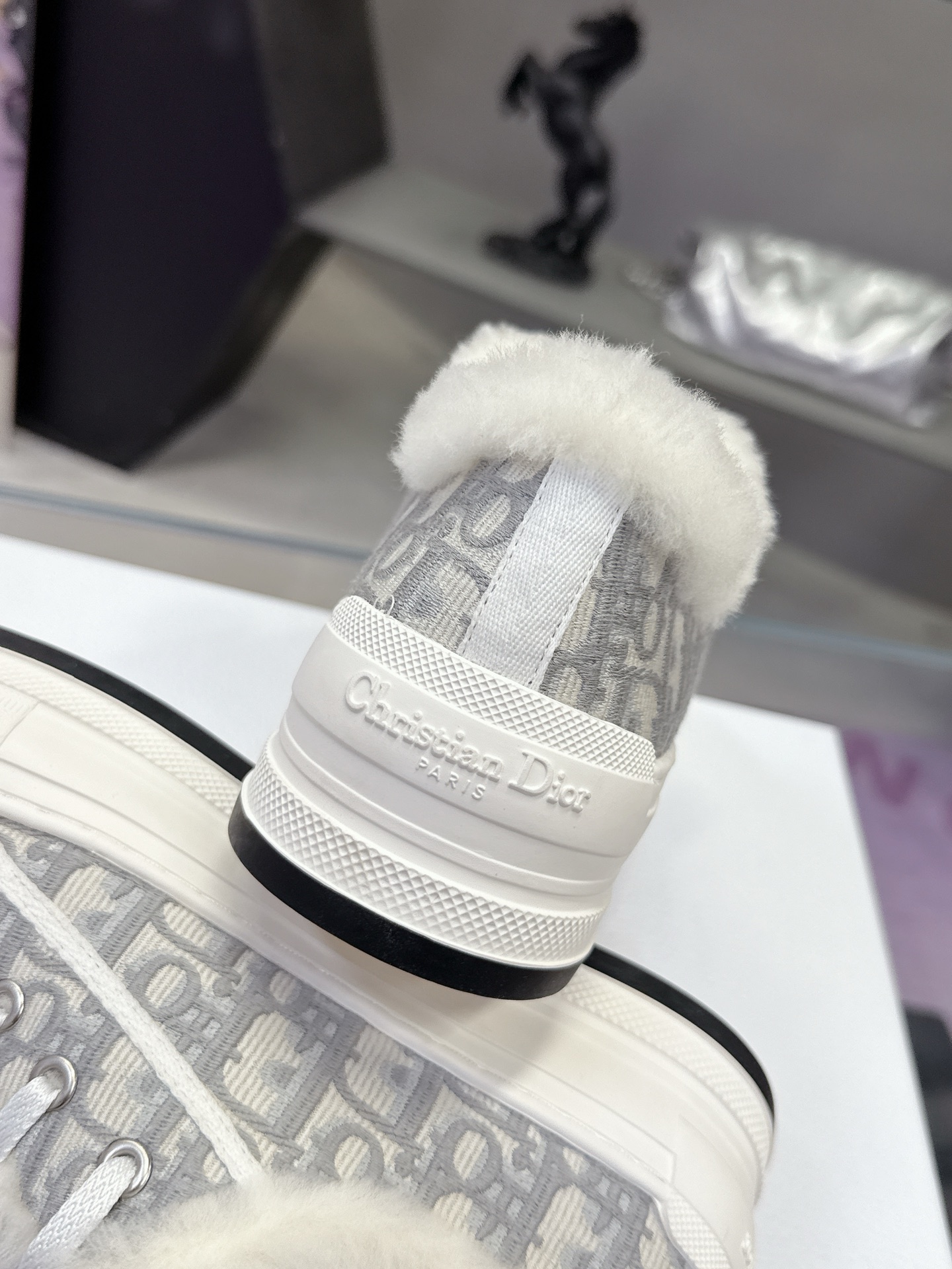 Dior – Stone Grey Cotton Embroidered with Dior Oblique Motif and Ecru Lambskin Shearling – 1:1 Replica Quality – DR-SOR05