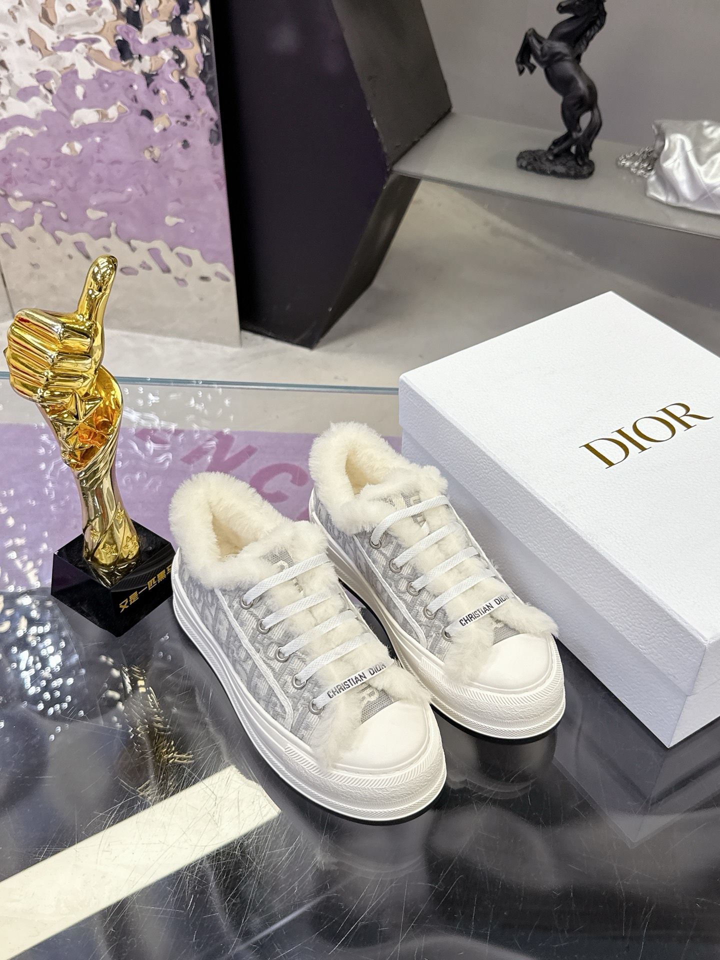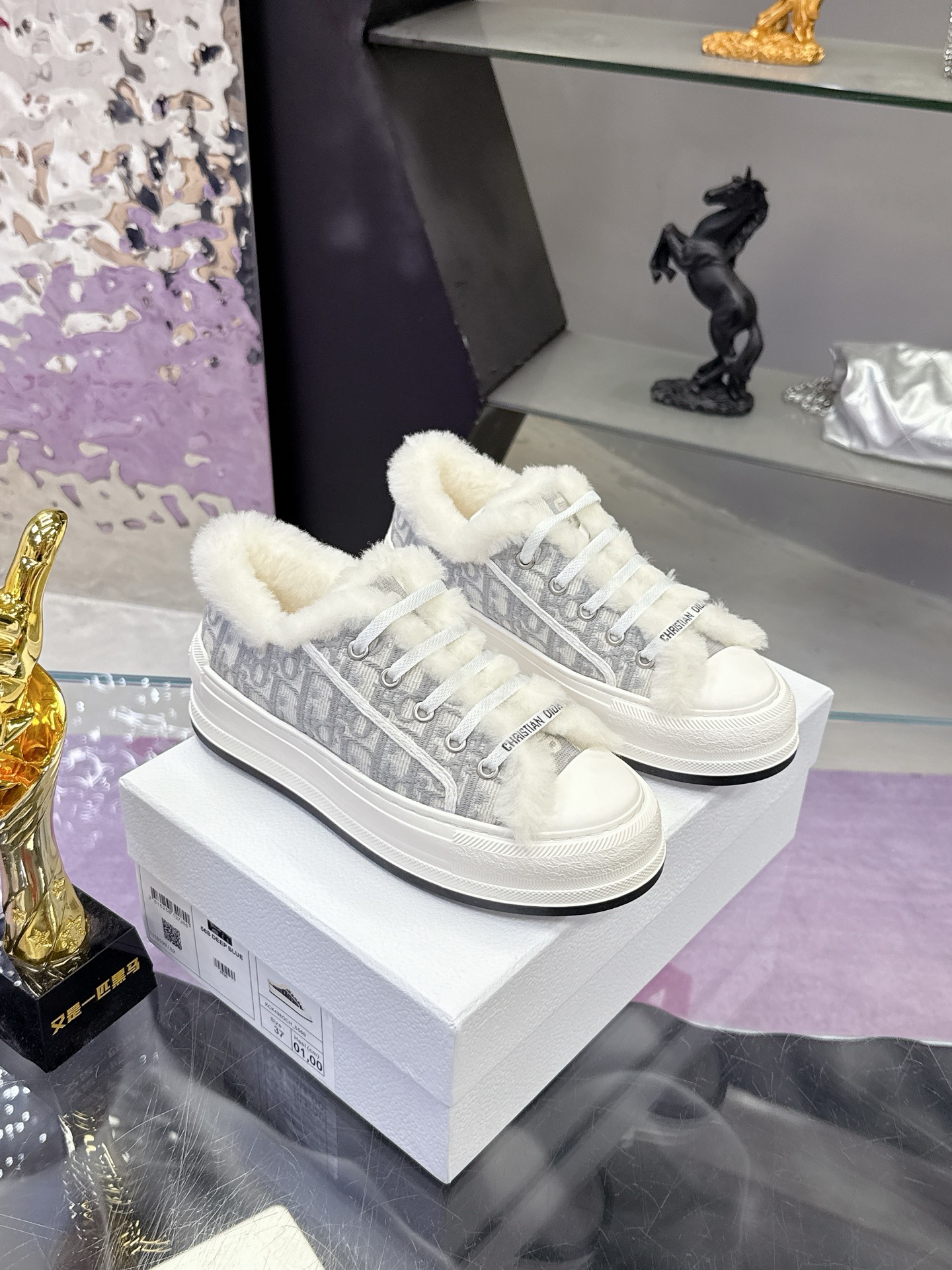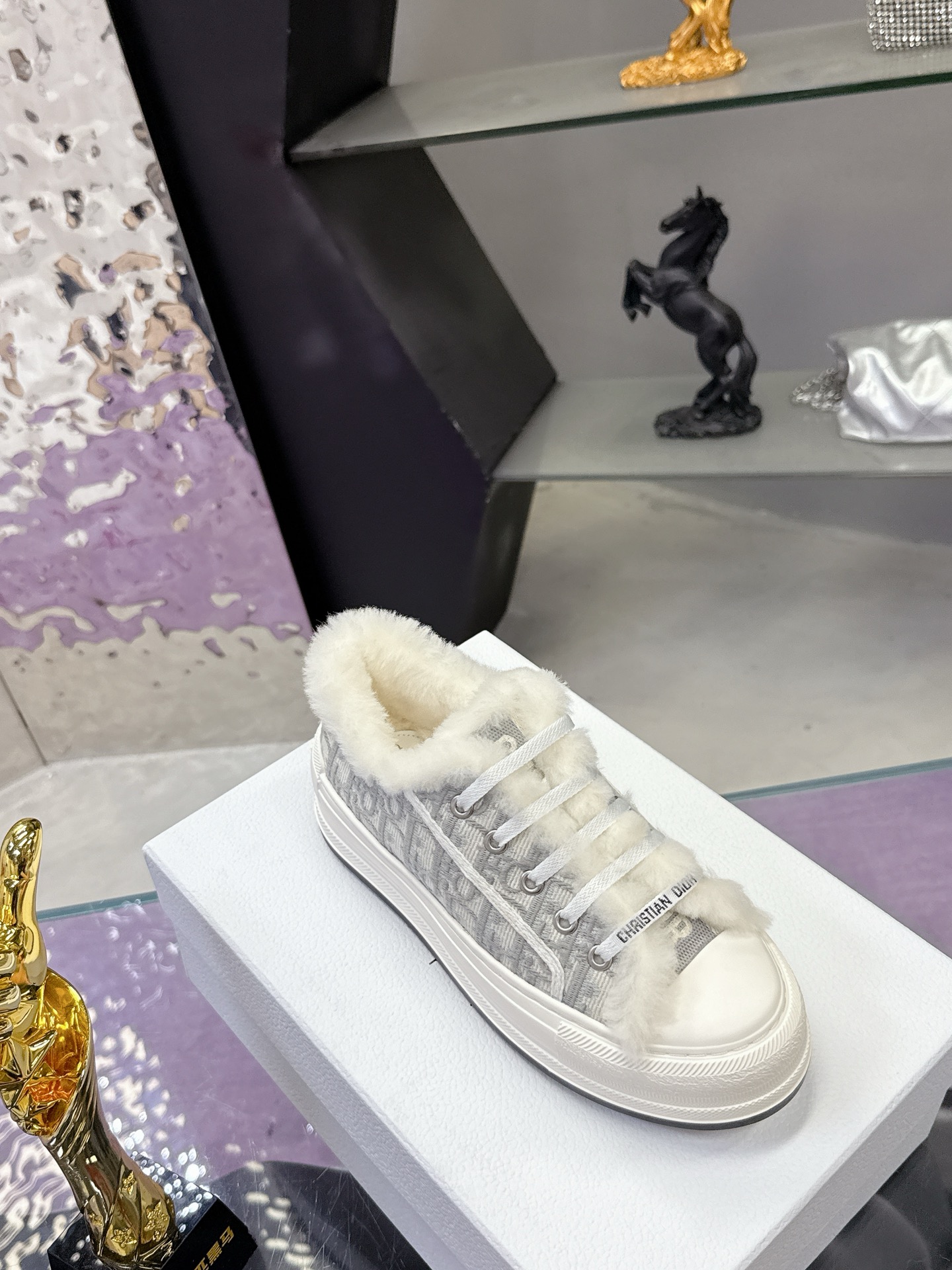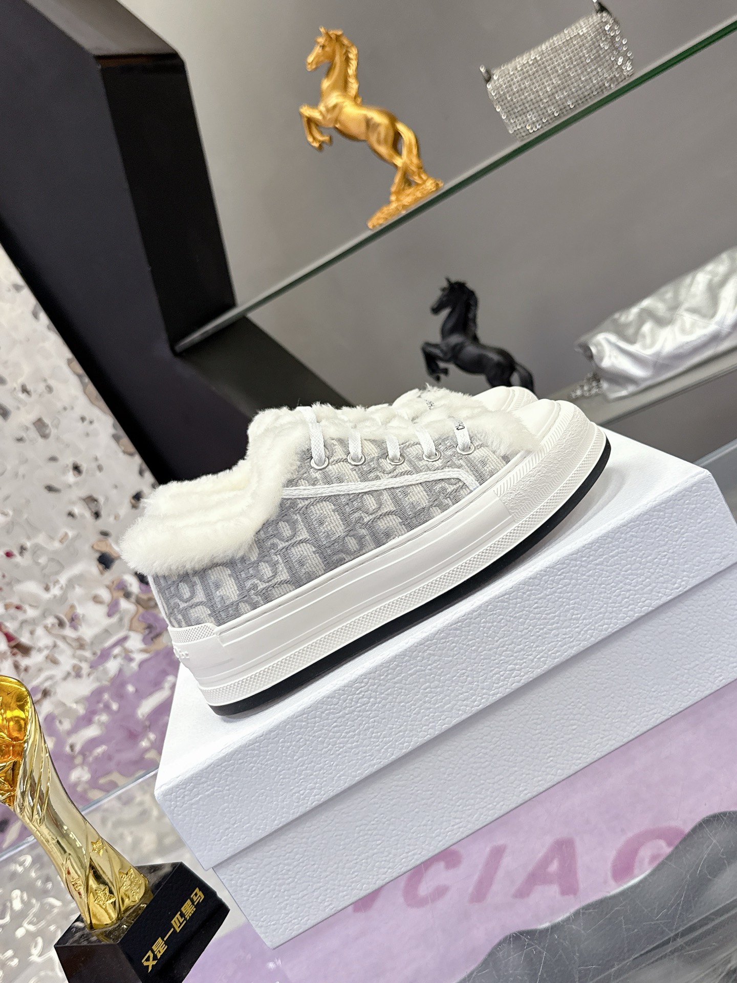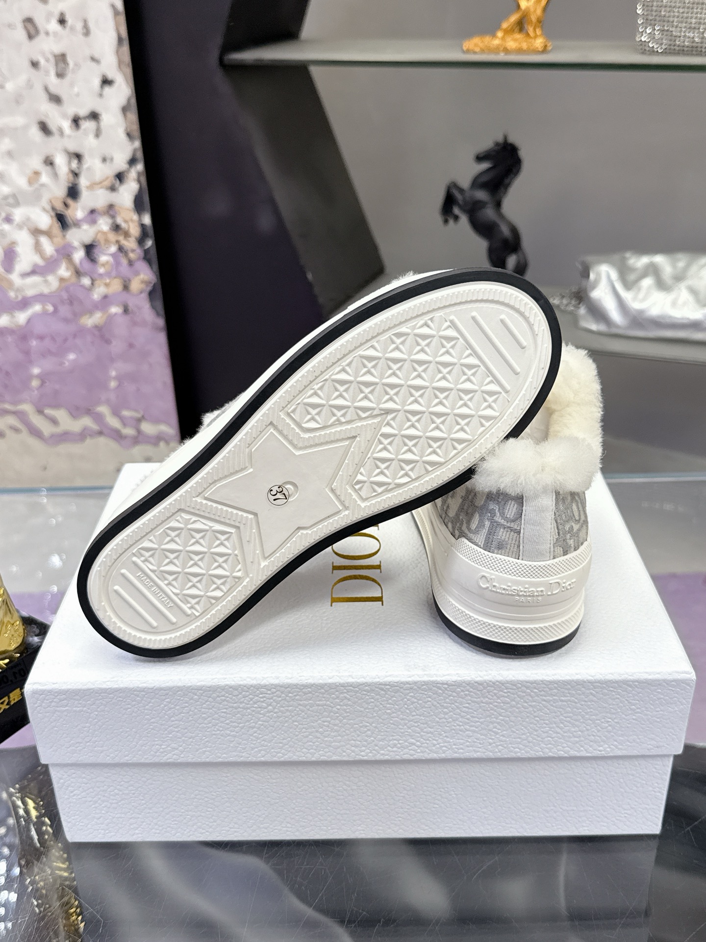 Dior – Stone Grey Cotton Embroidered with Dior Oblique Motif and Ecru Lambskin Shearling – 1:1 Replica Quality – DR-SOR05