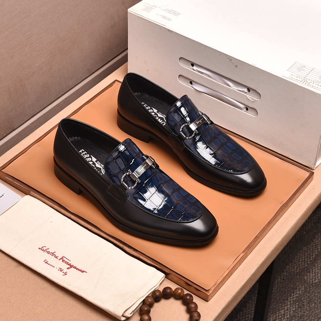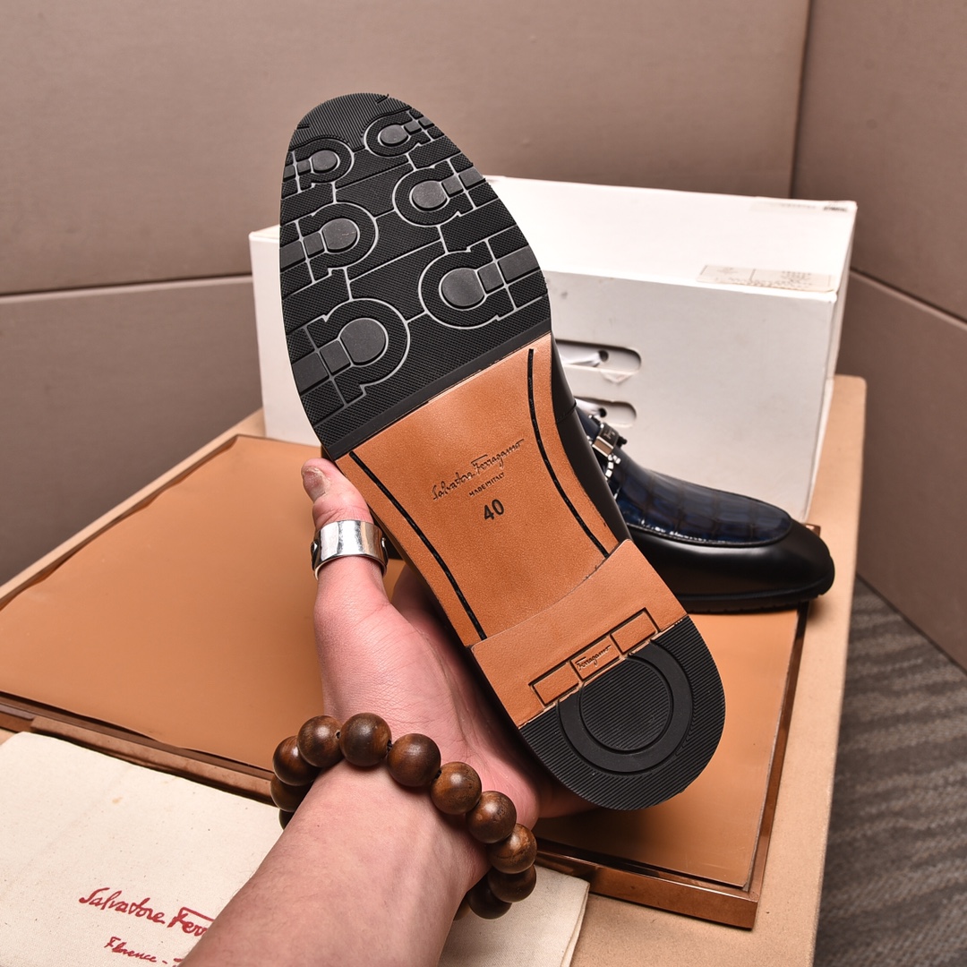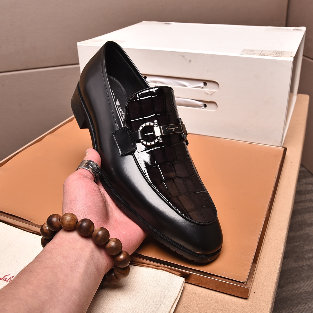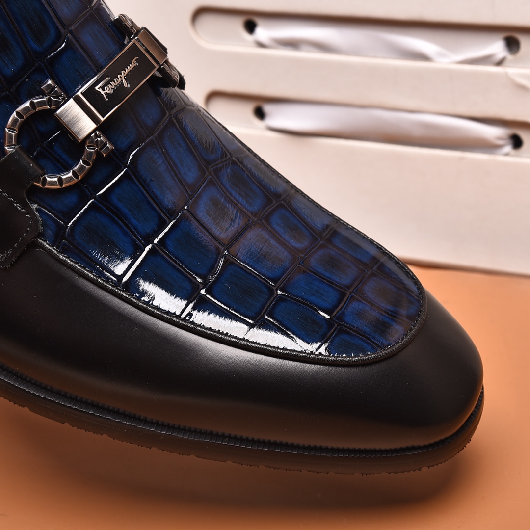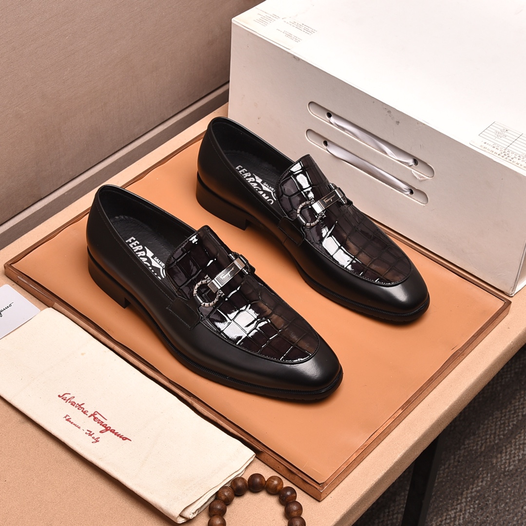 Ferragamo Men’s Loafers With Black Crocodile Gancini Leather Pattern – 1:1 Replica Quality – FER-SH38
