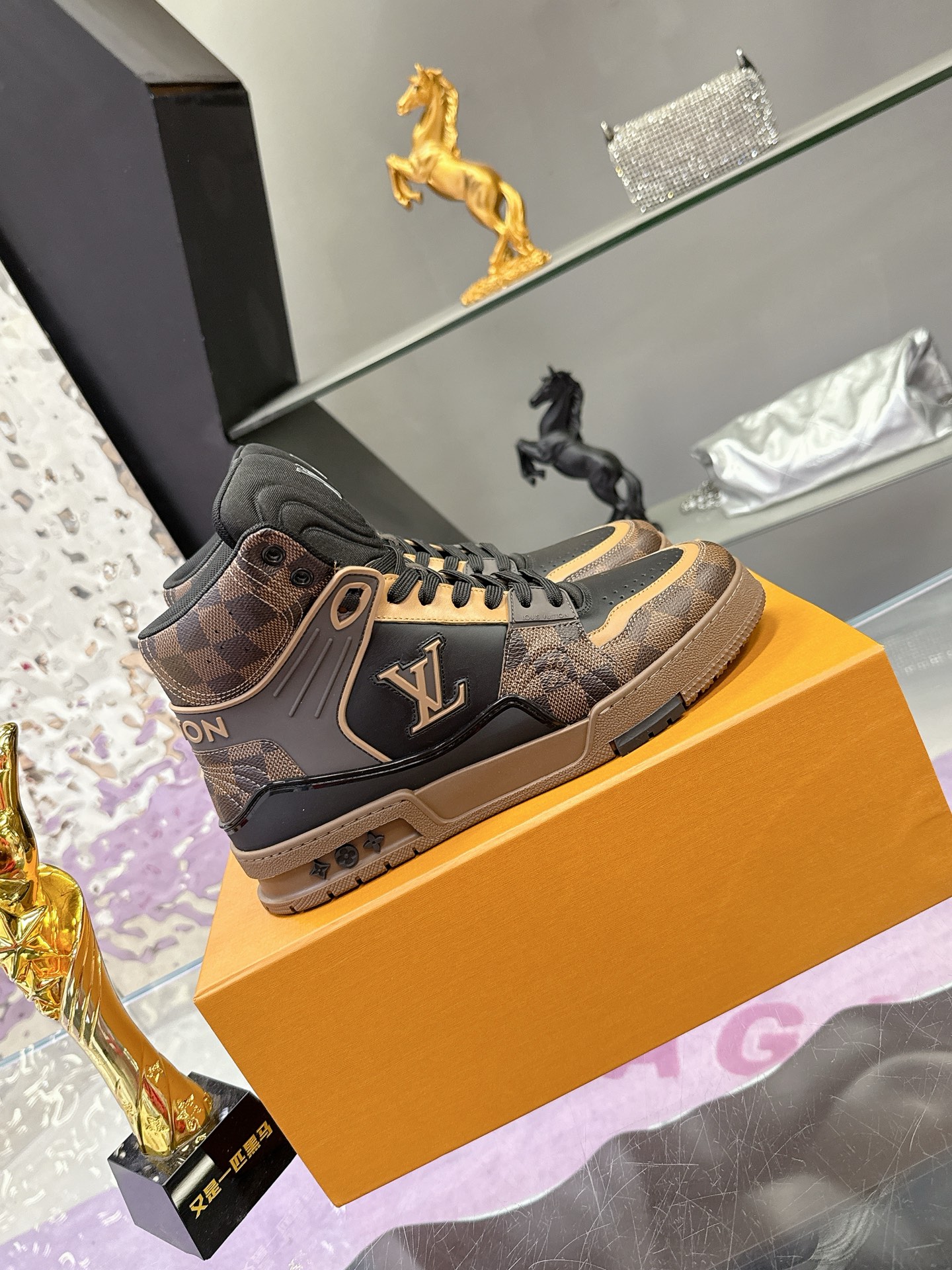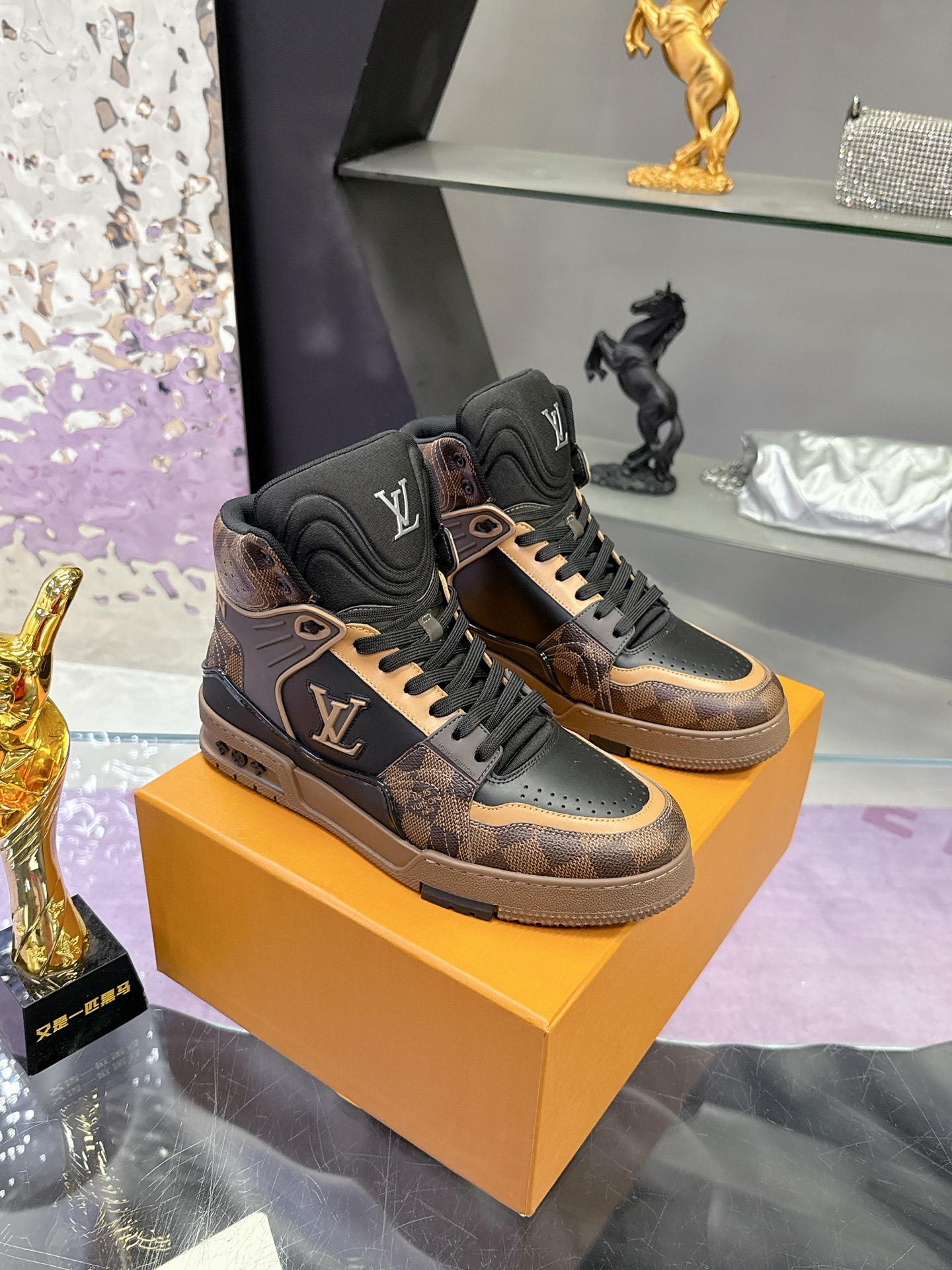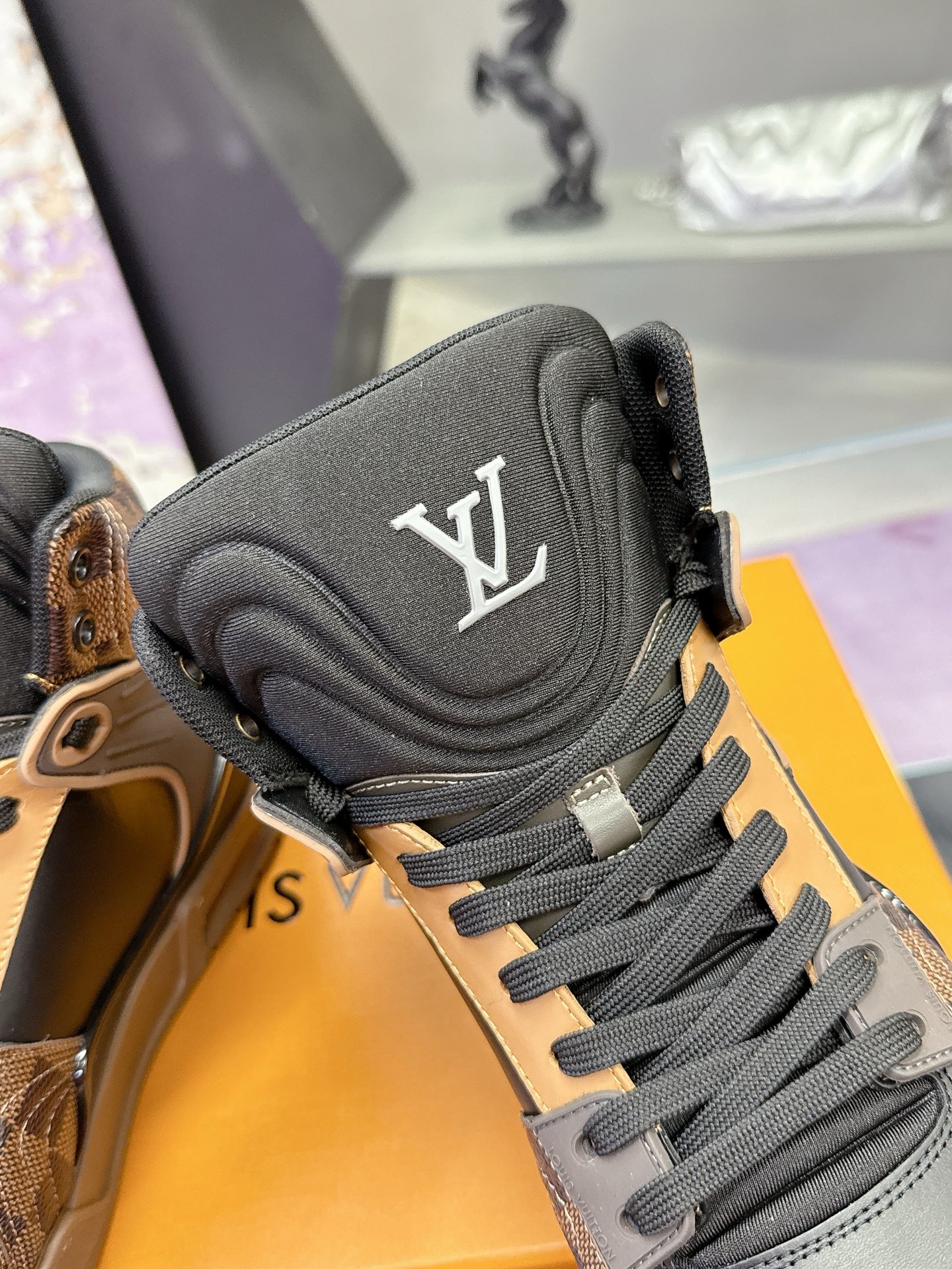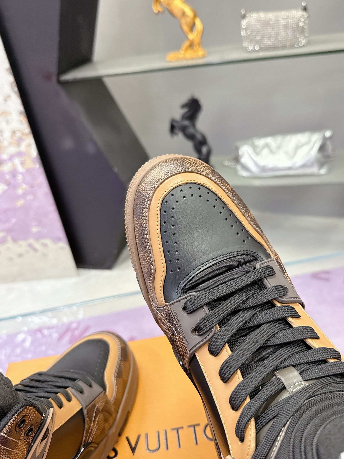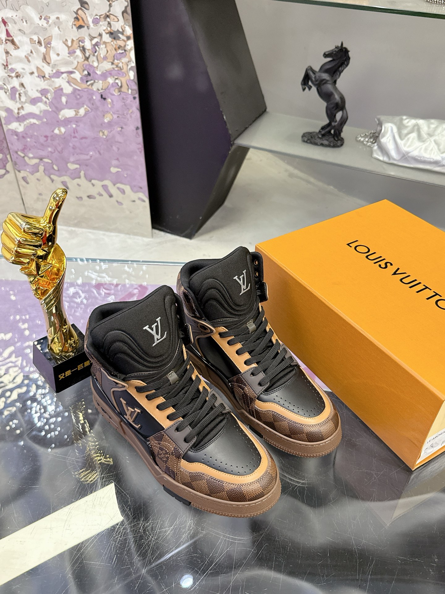 Louis Vuitton Brown Monogram Trainer Shoes – White & Blue Monogram Denim – 1:1 Replica Quality – LV-SOR25