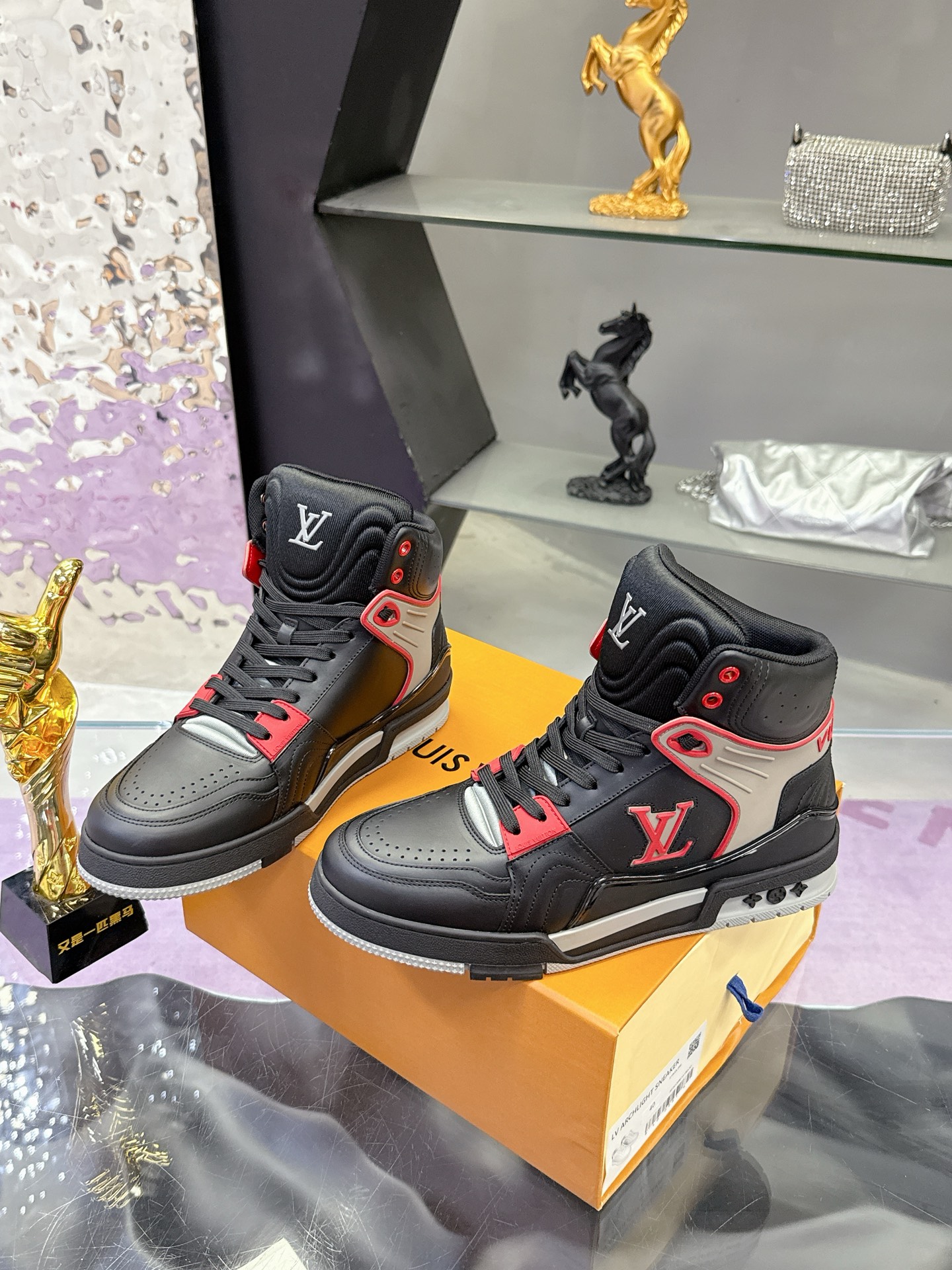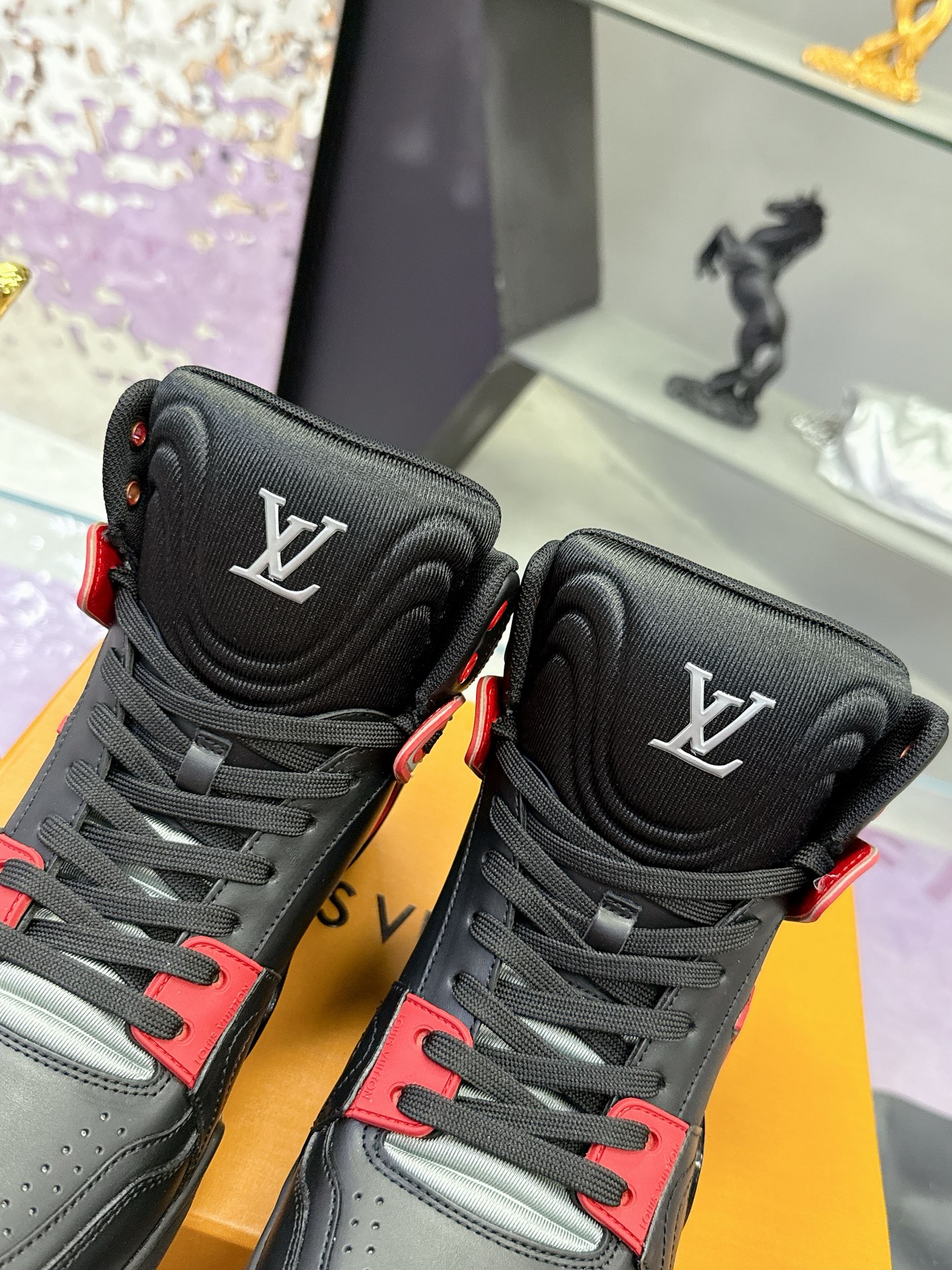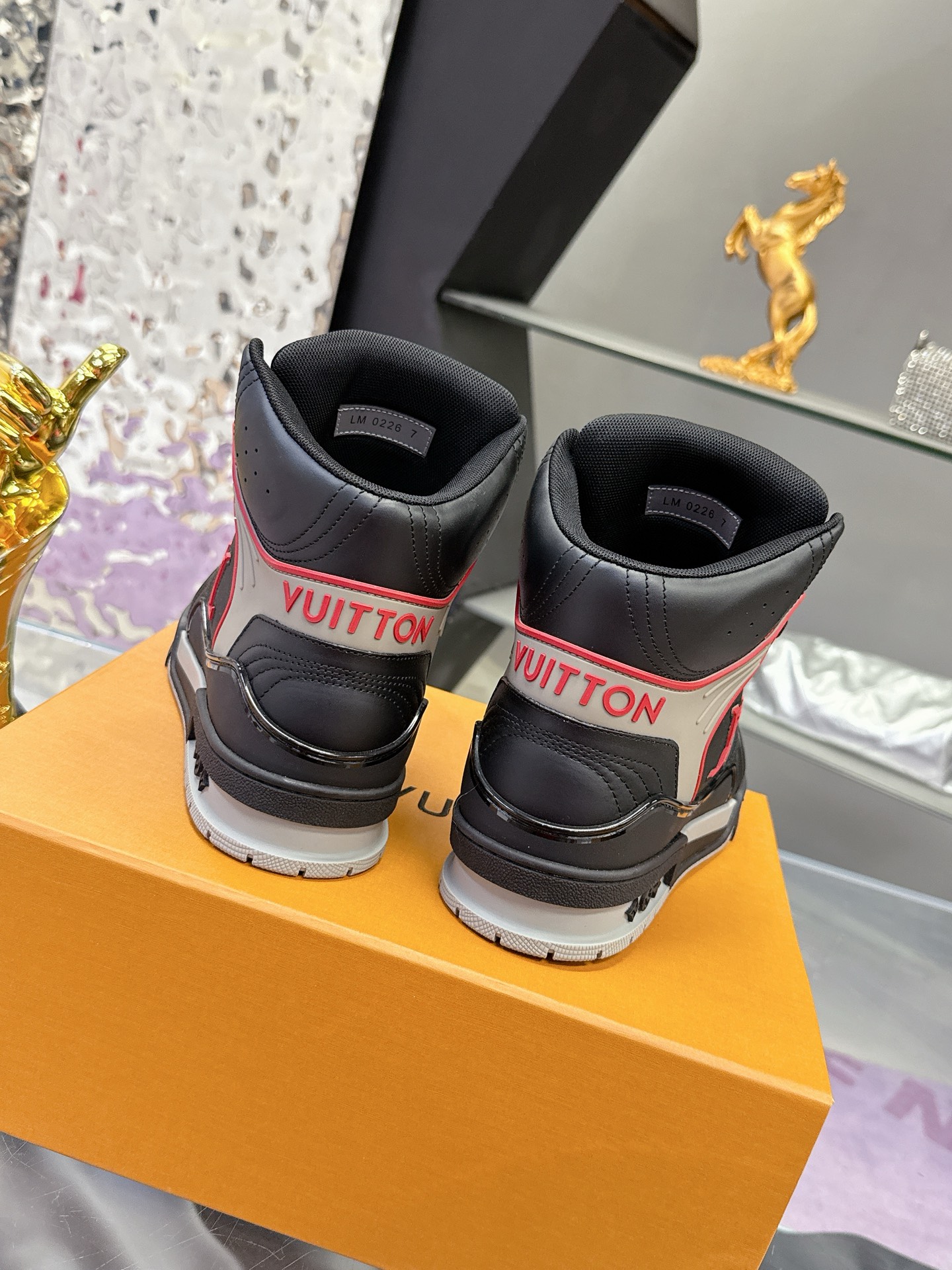 Louis Vuitton LV Ankle Trainers ‘Black Red Grey’ – White & Blue Monogram Denim – 1:1 Replica Quality – LV-SOR23