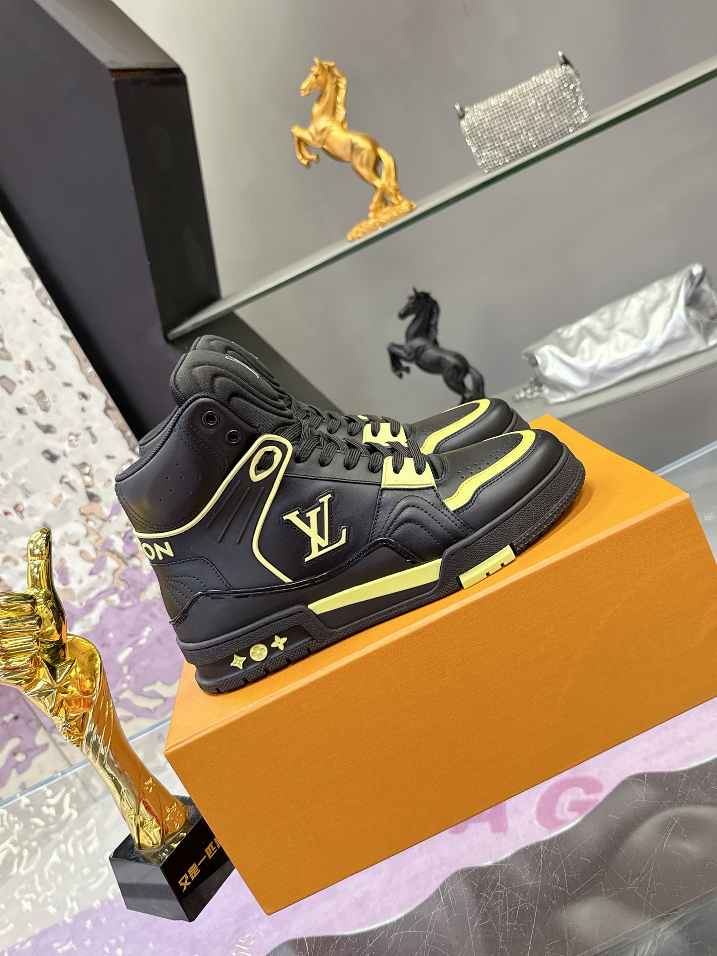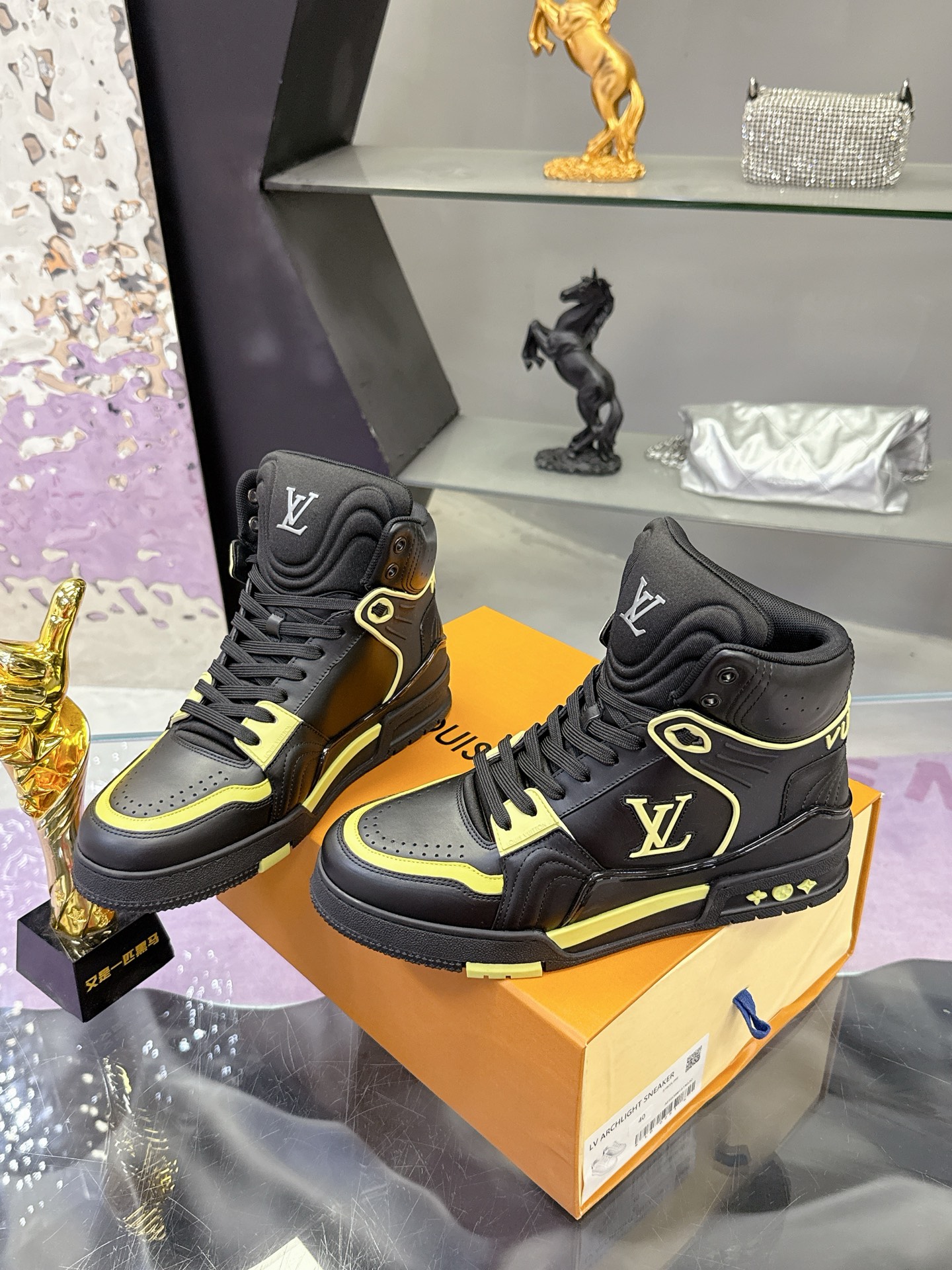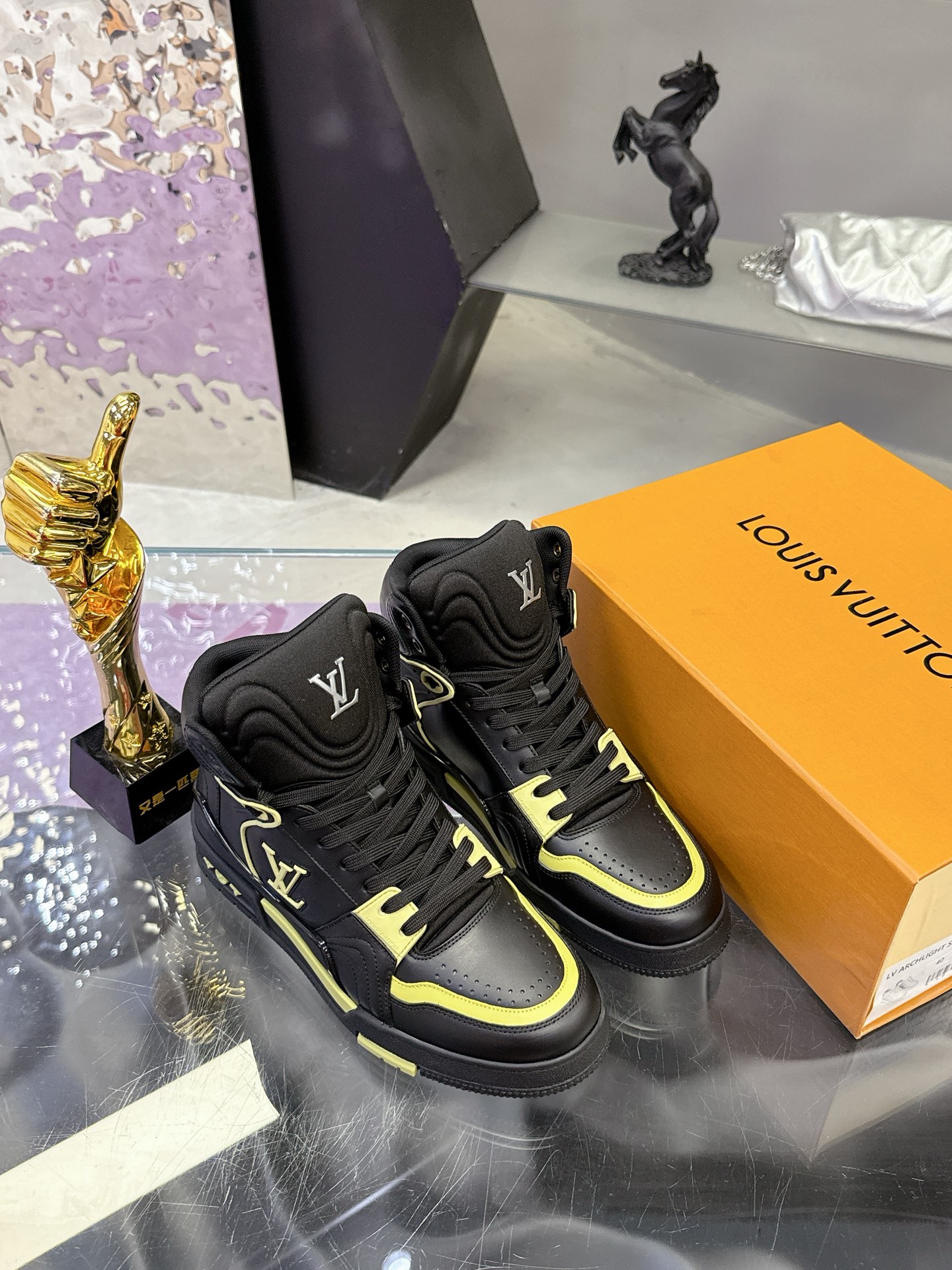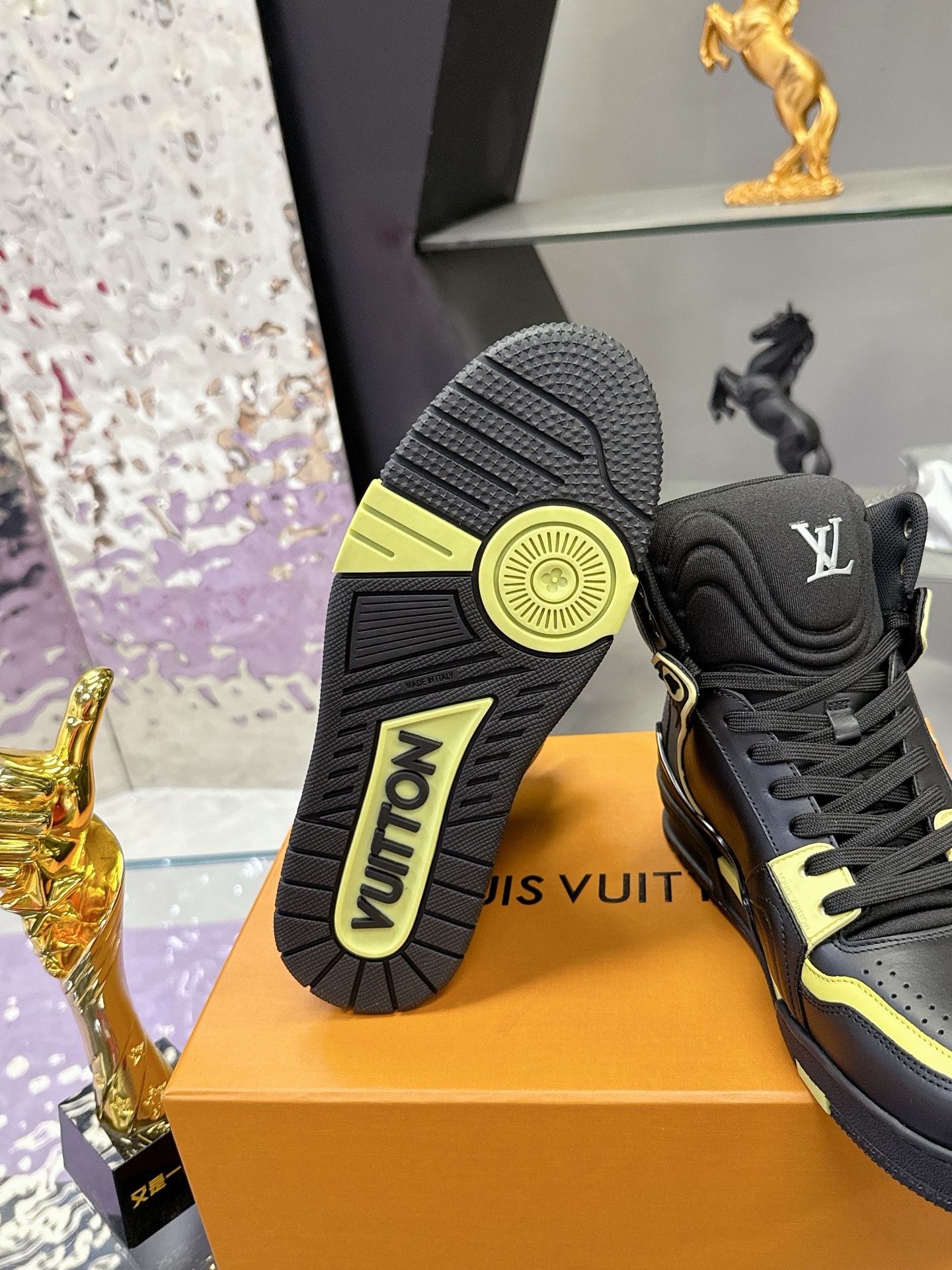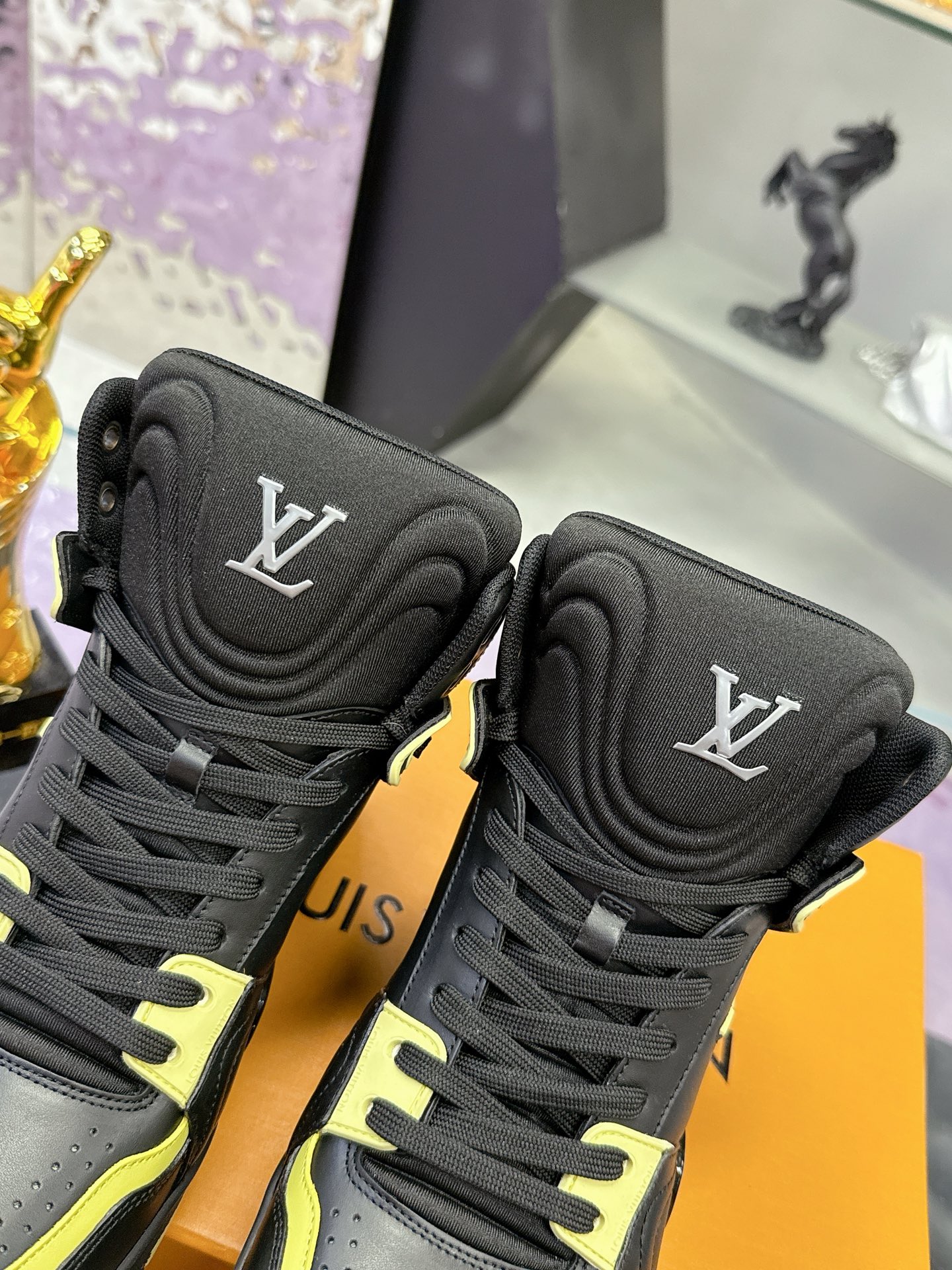 Louis Vuitton LV Ankle Trainers ‘Black yellow’ – White & Blue Monogram Denim – 1:1 Replica Quality – LV-SOR24