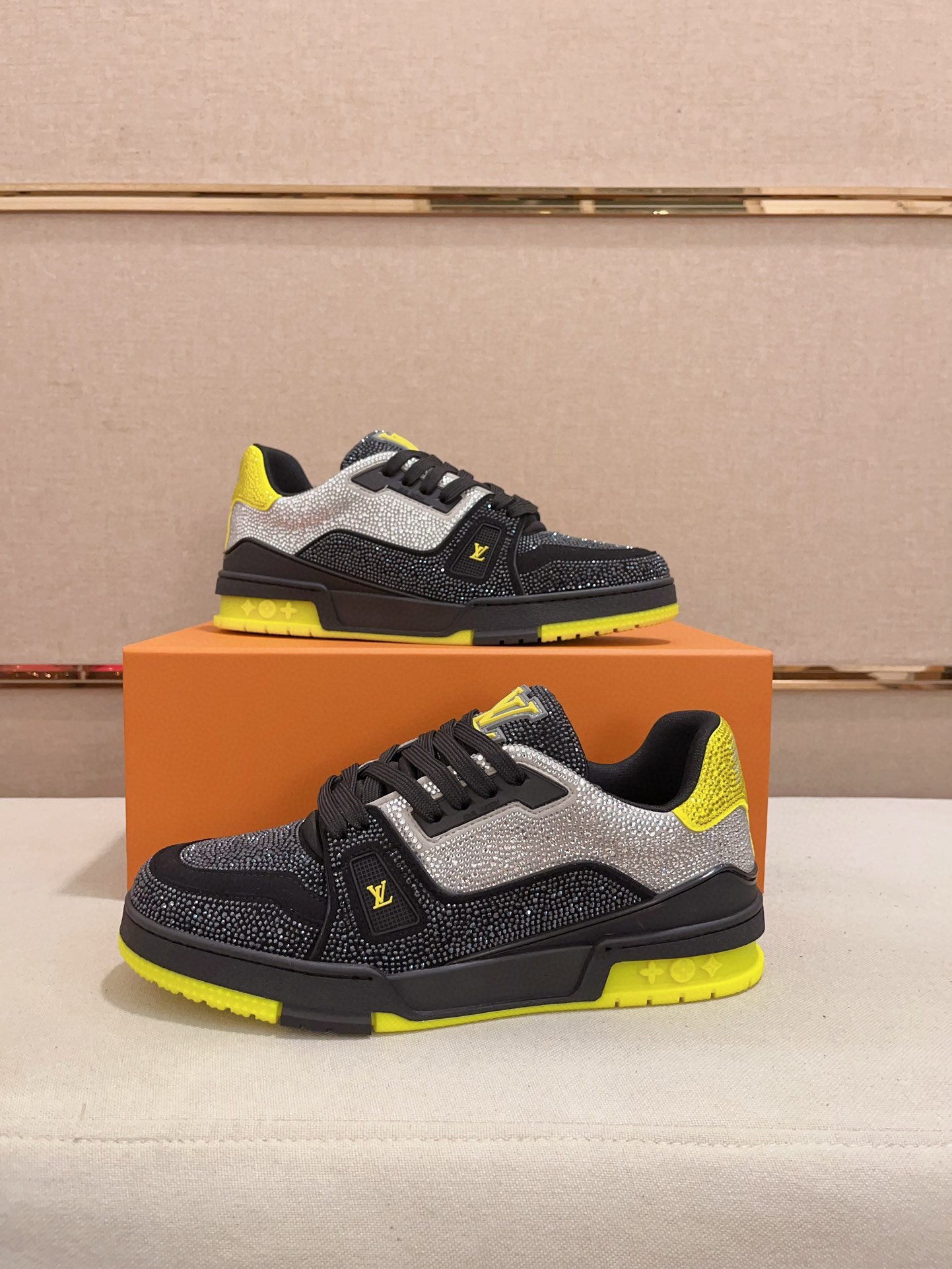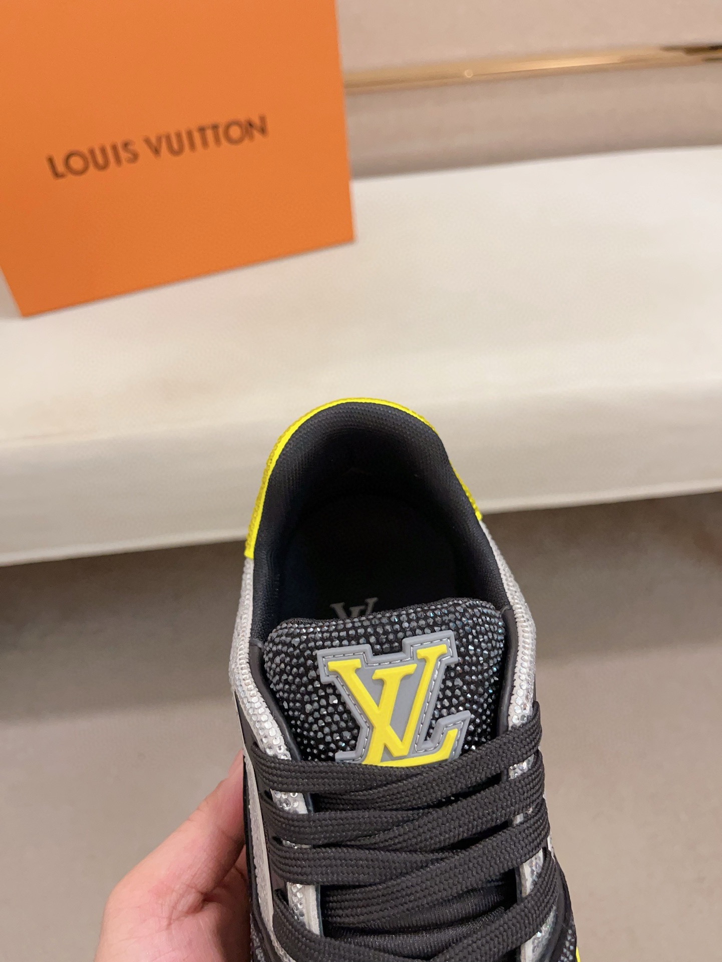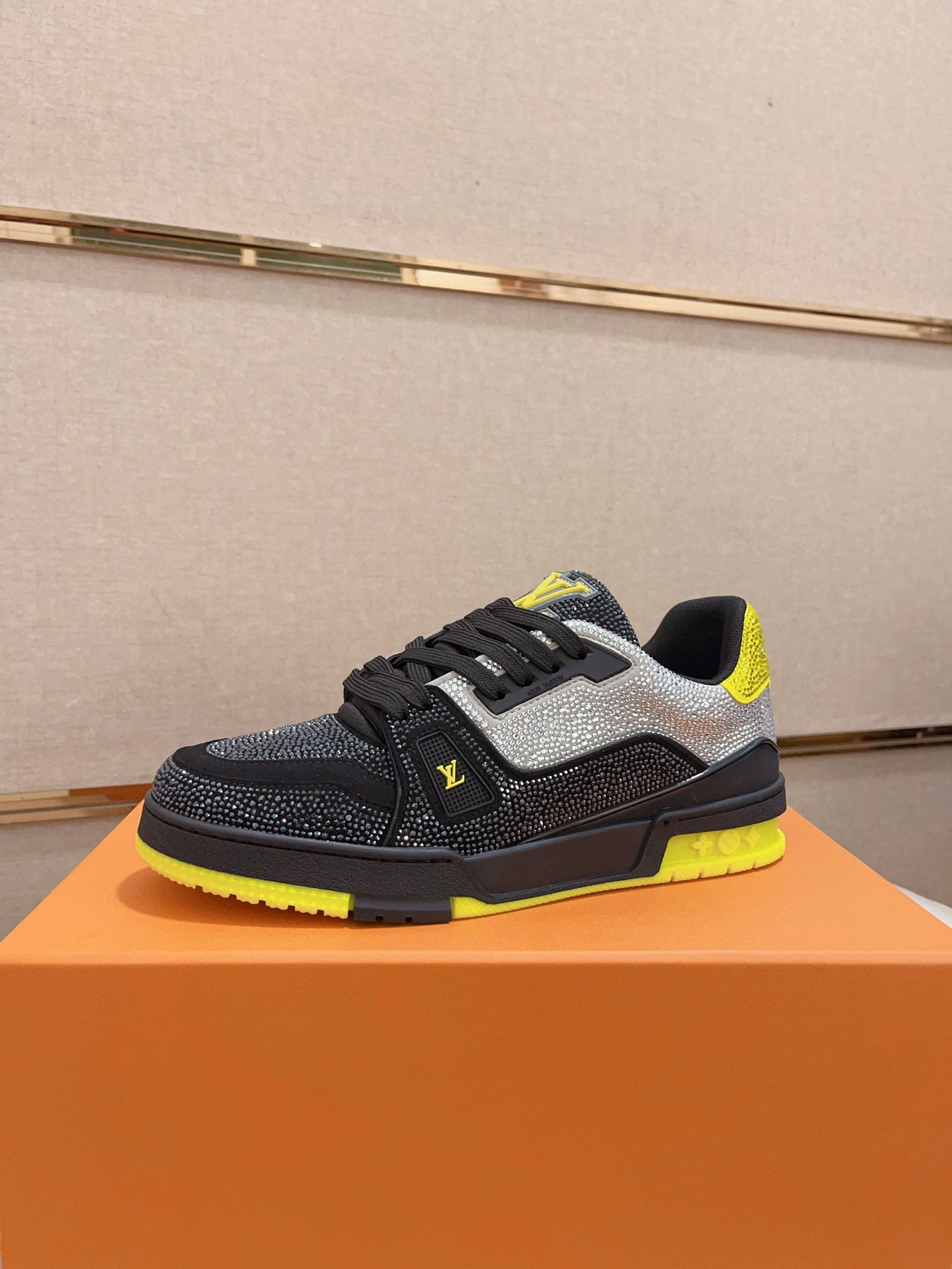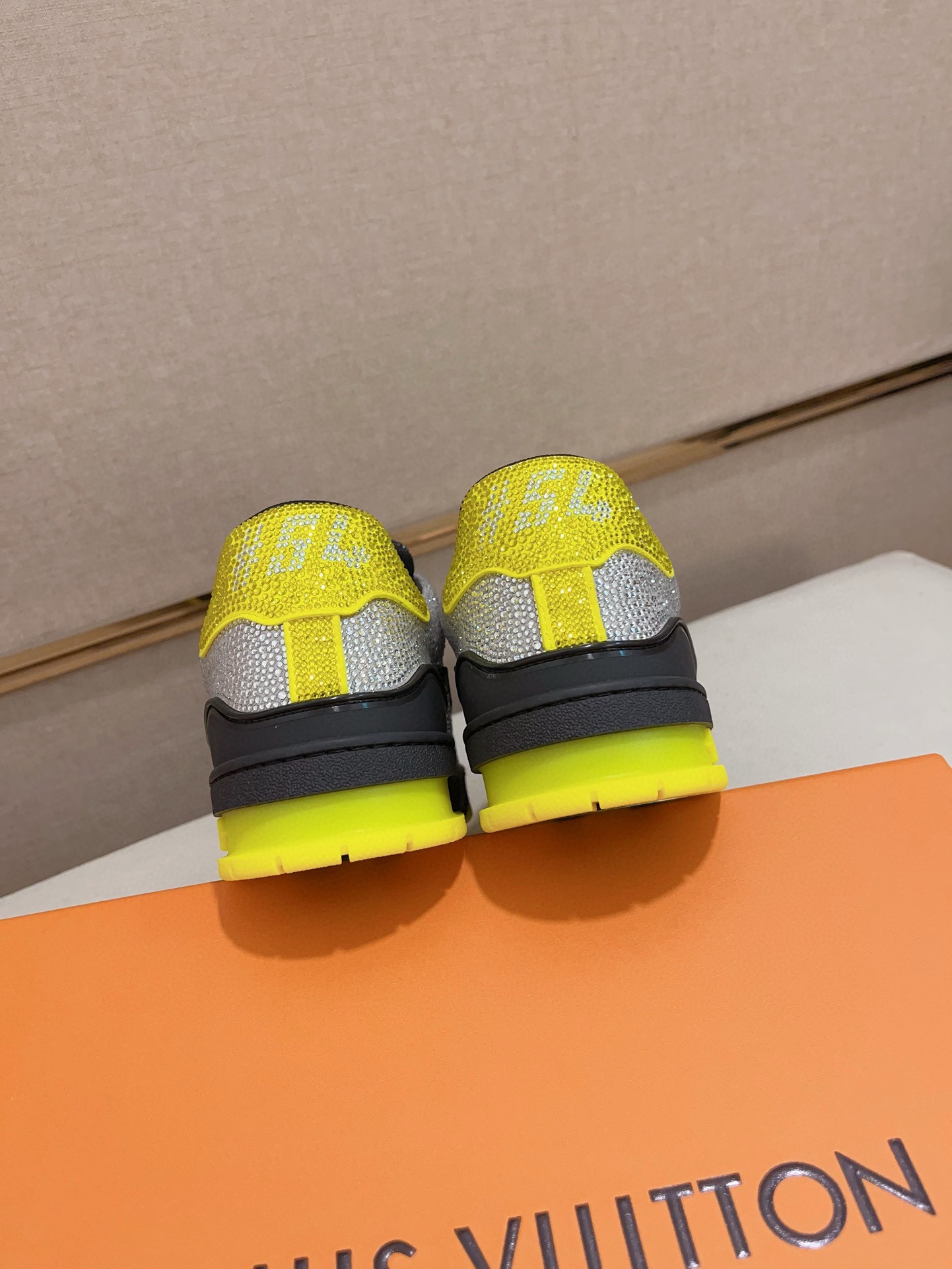Louis Vuitton Trainer #54 Signature Yellow Black Crystal – White & Blue Monogram Denim – 1:1 Replica Quality – LV-SOR18