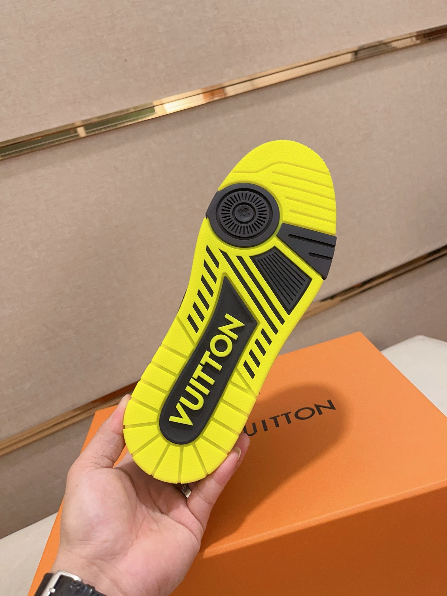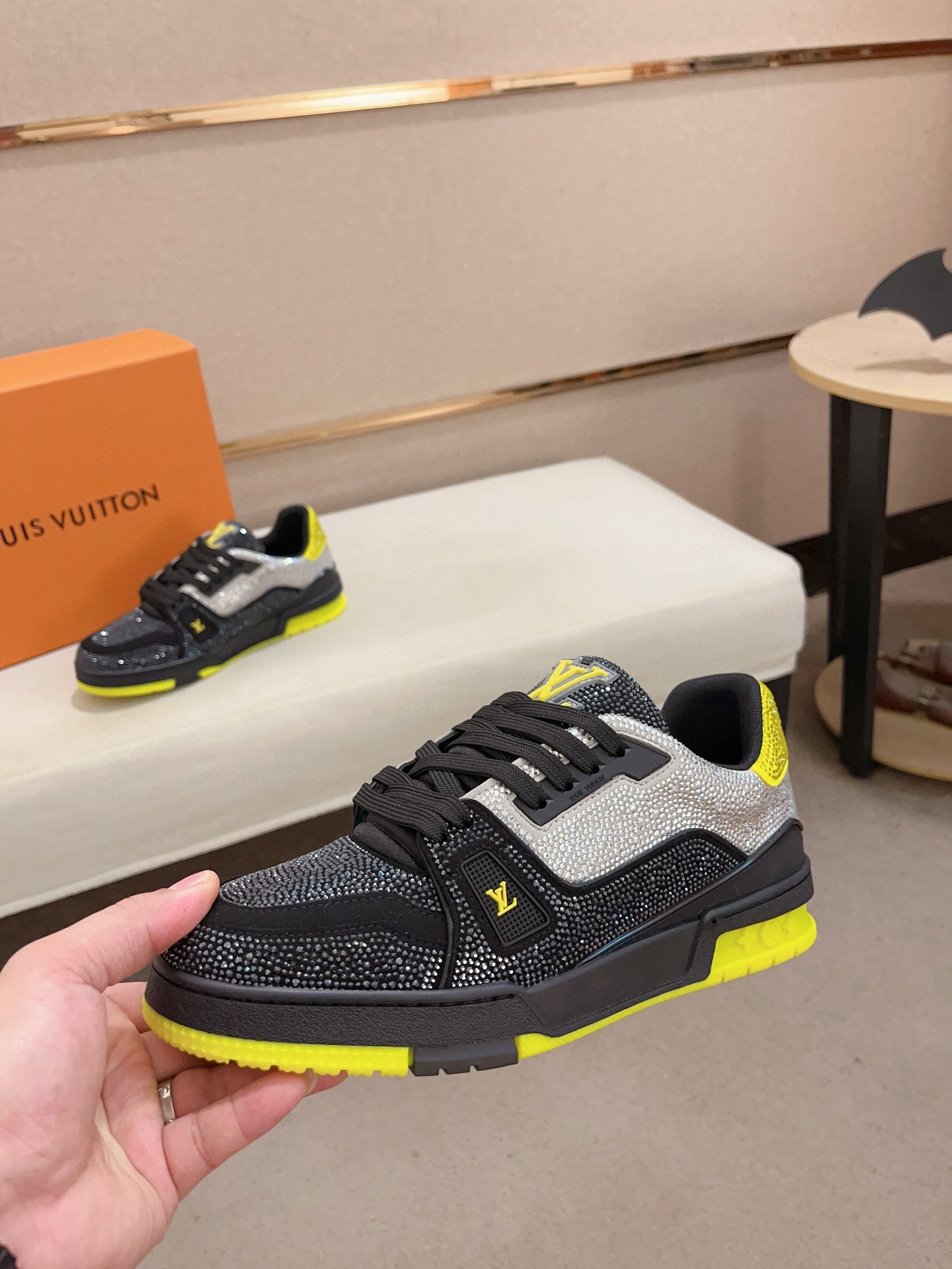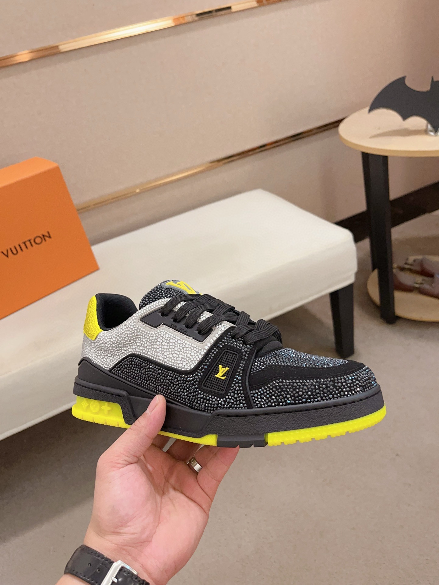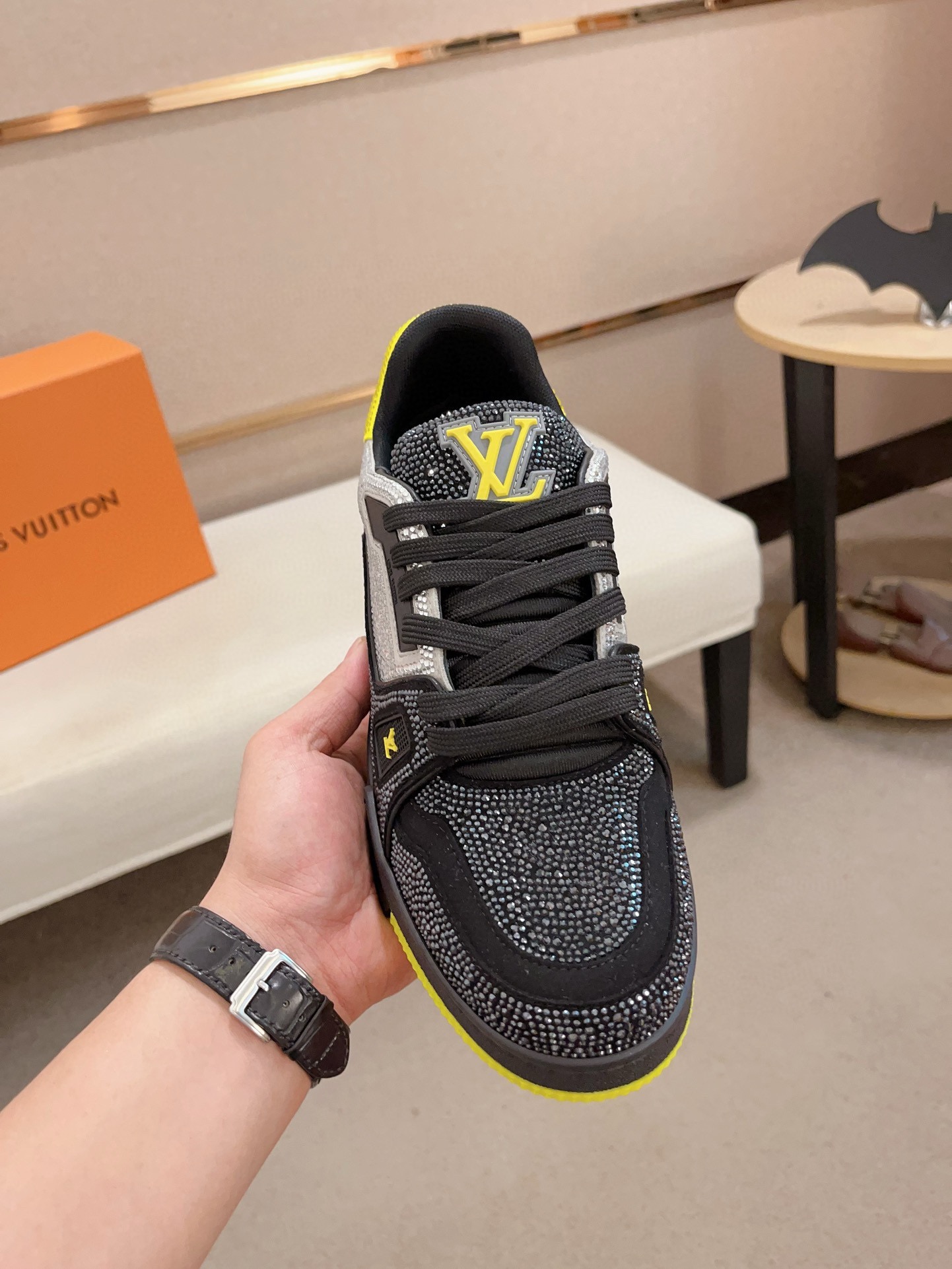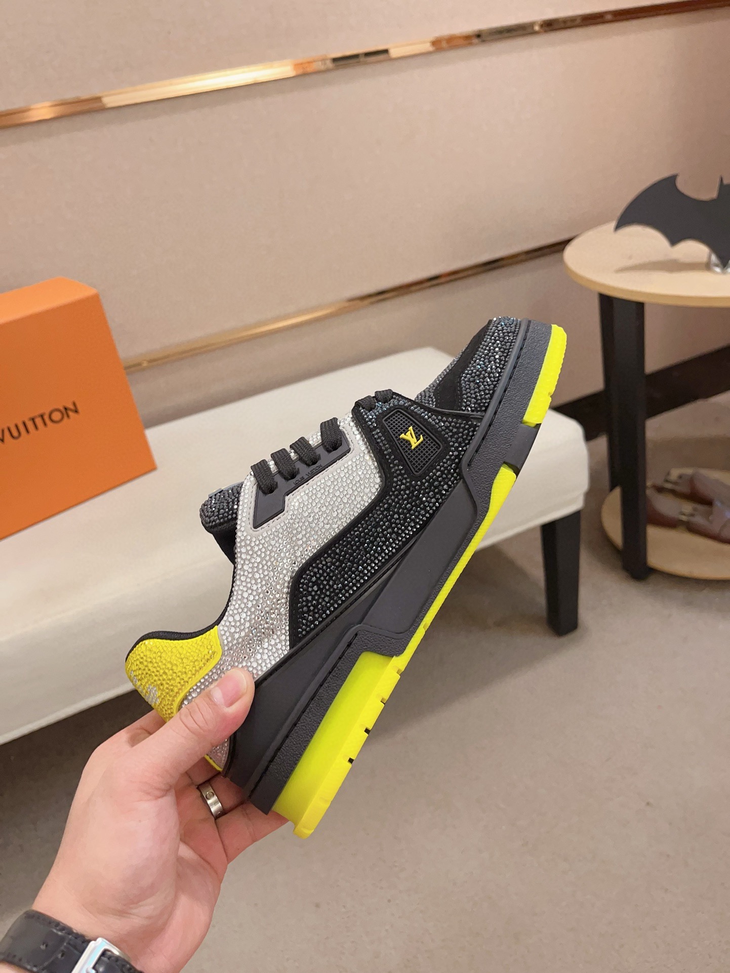 Louis Vuitton Trainer #54 Signature Yellow Black Crystal – White & Blue Monogram Denim – 1:1 Replica Quality – LV-SOR18