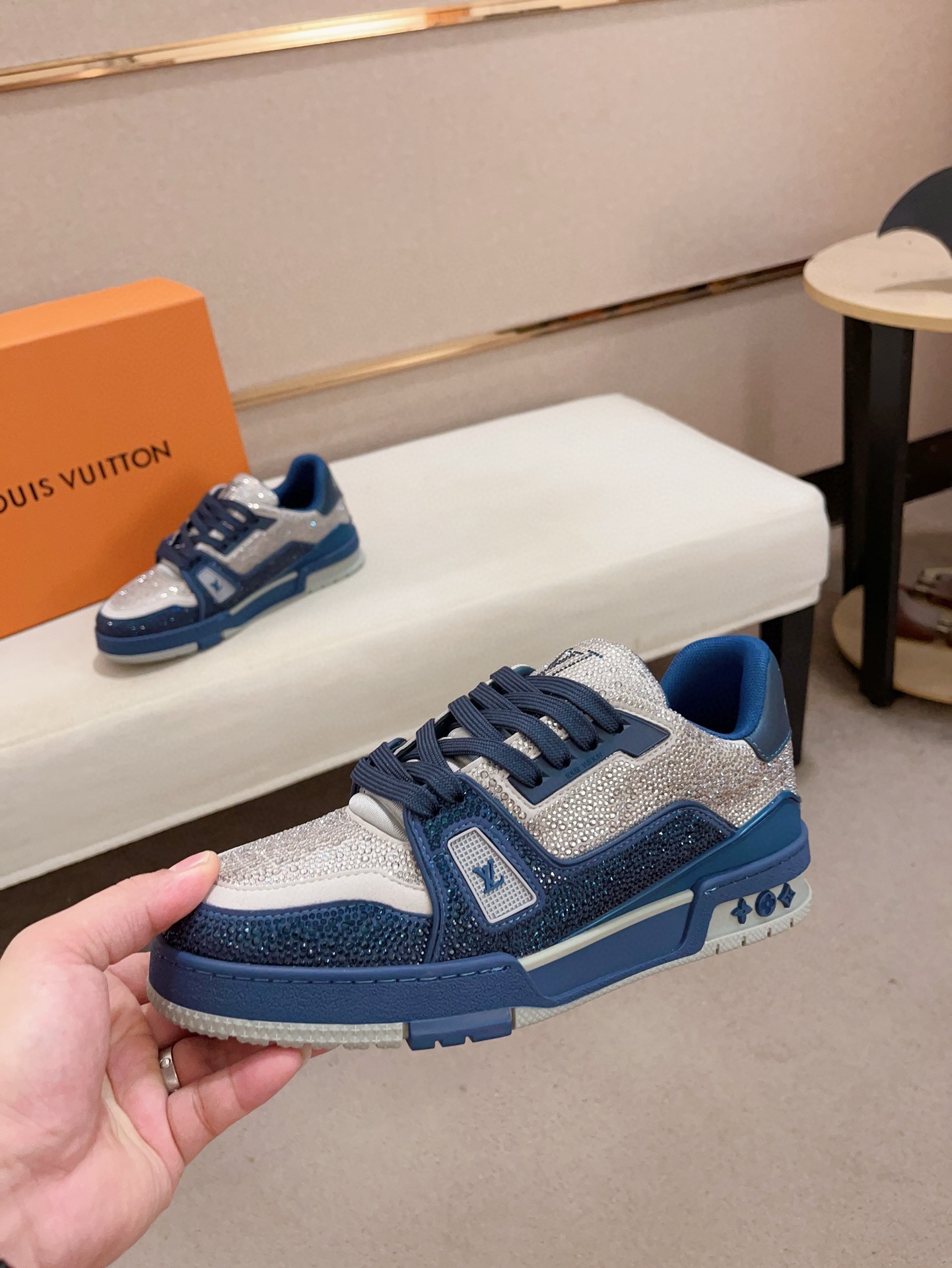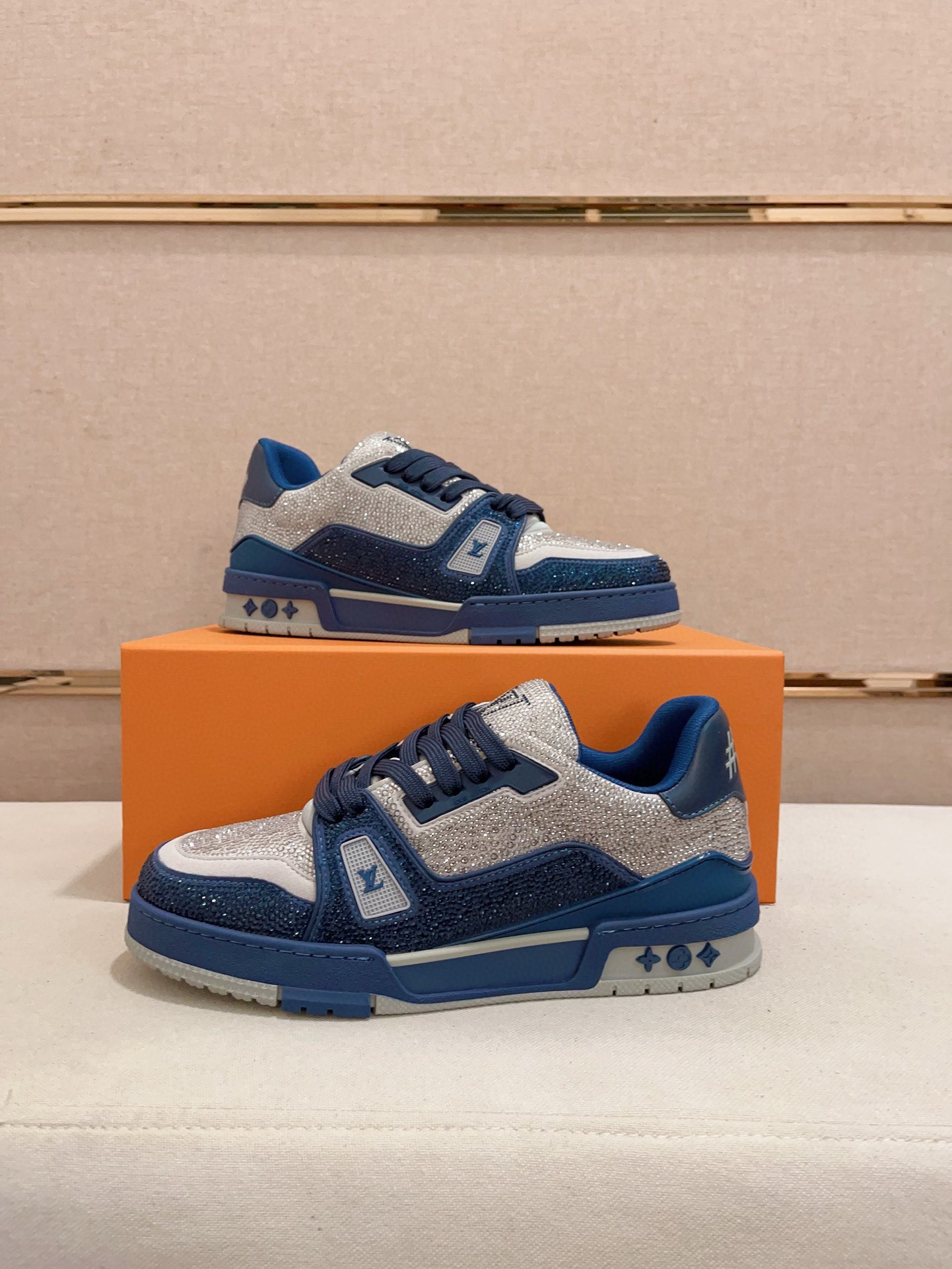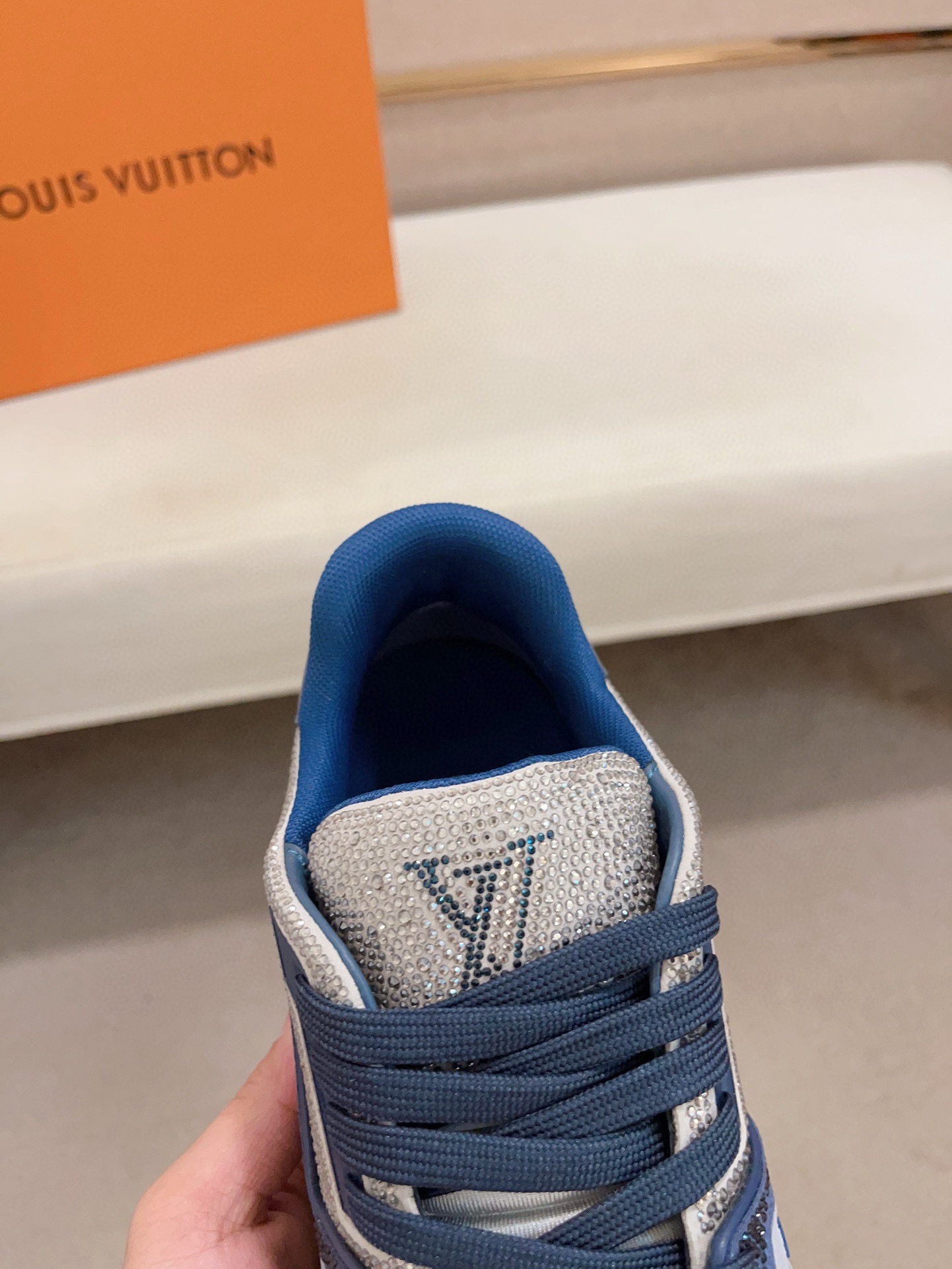Louis Vuitton Trainer Blue Grey Crystal – White & Blue Monogram Denim – 1:1 Replica Quality – LV-SOR17