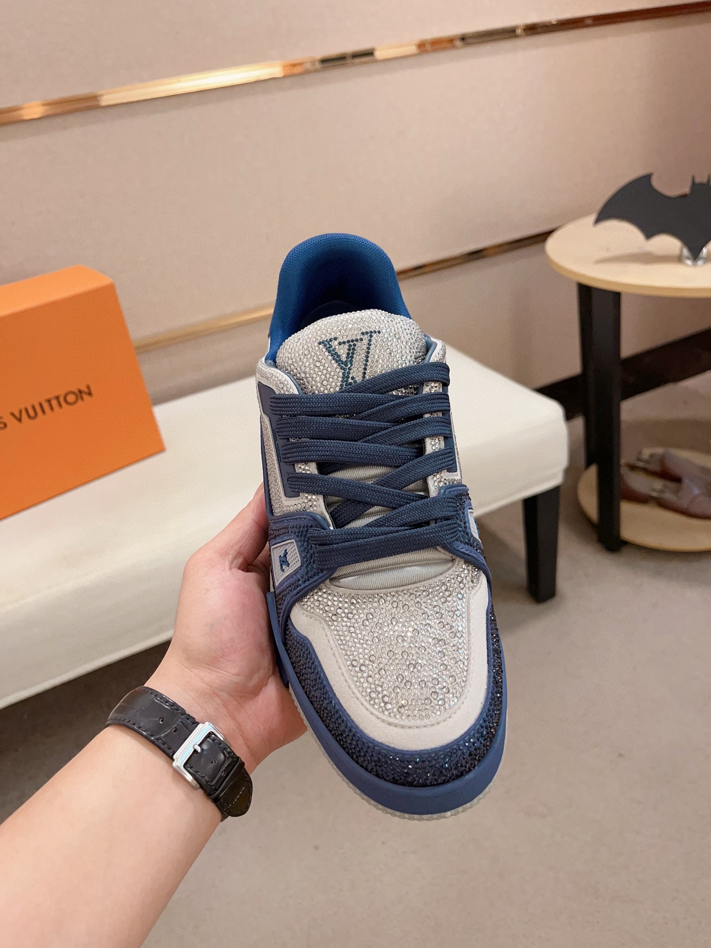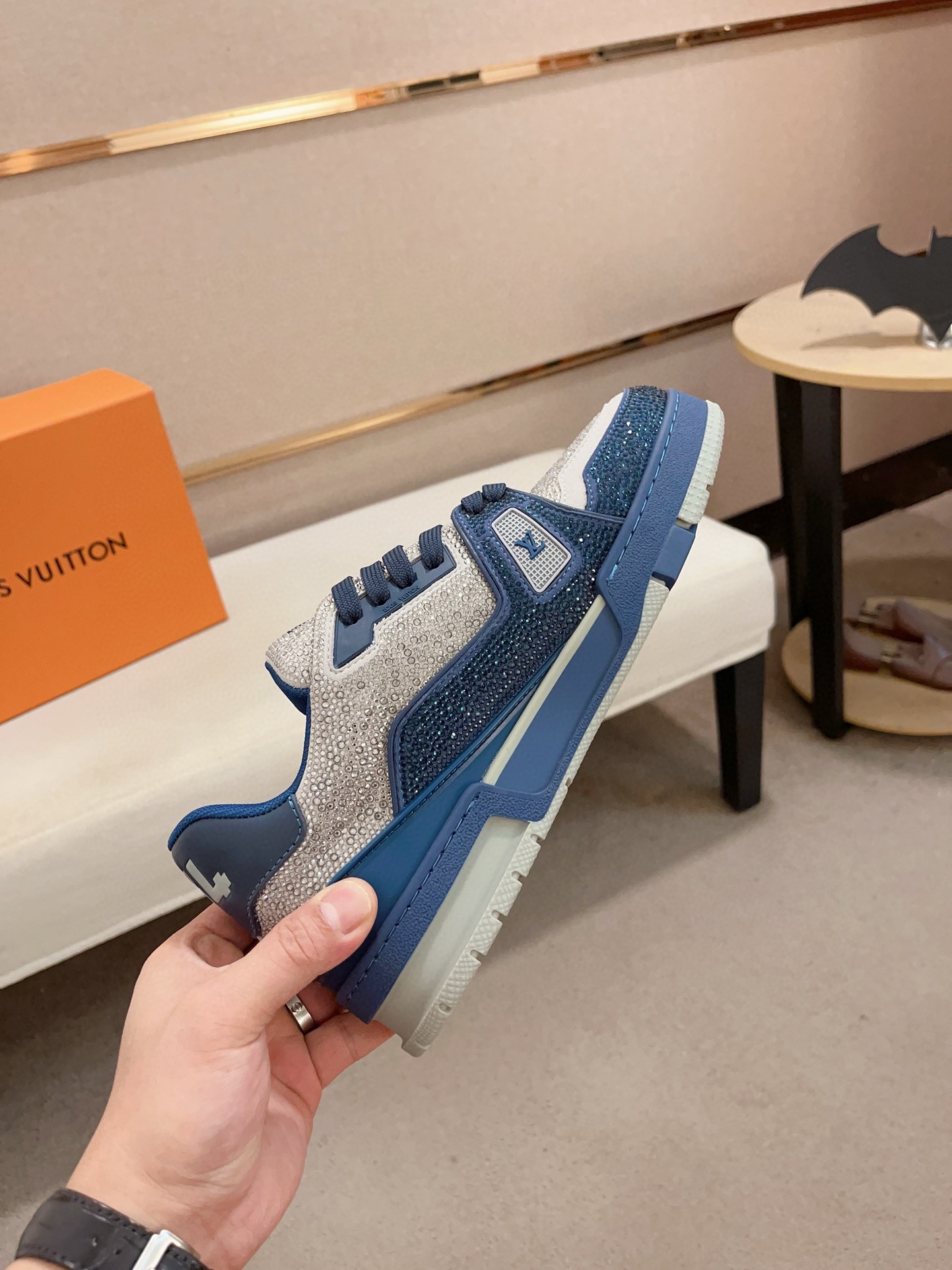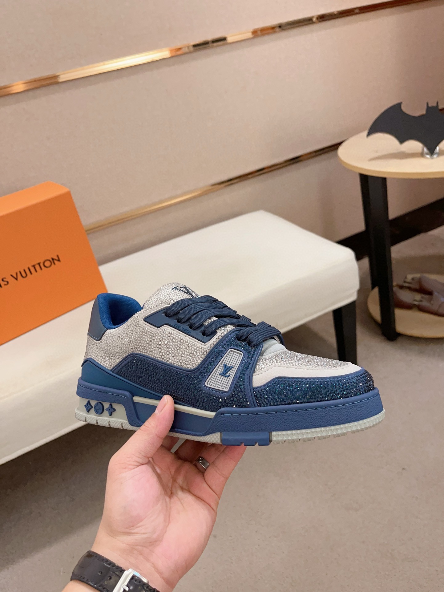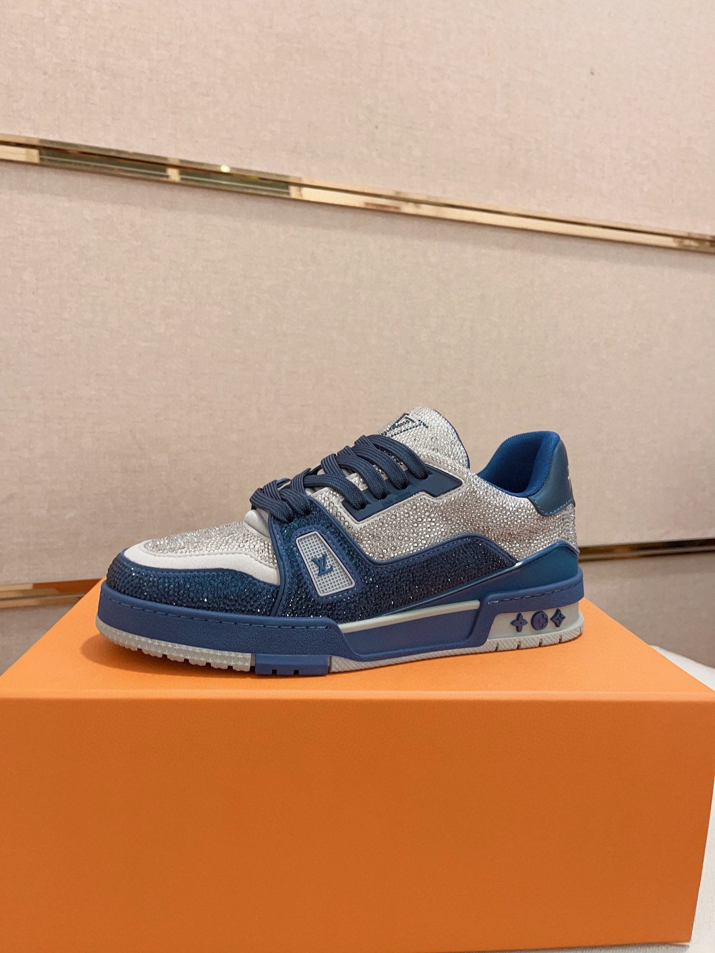 Louis Vuitton Trainer Blue Grey Crystal – White & Blue Monogram Denim – 1:1 Replica Quality – LV-SOR17