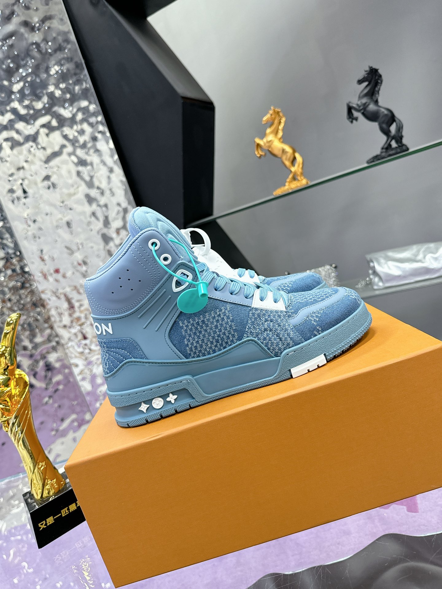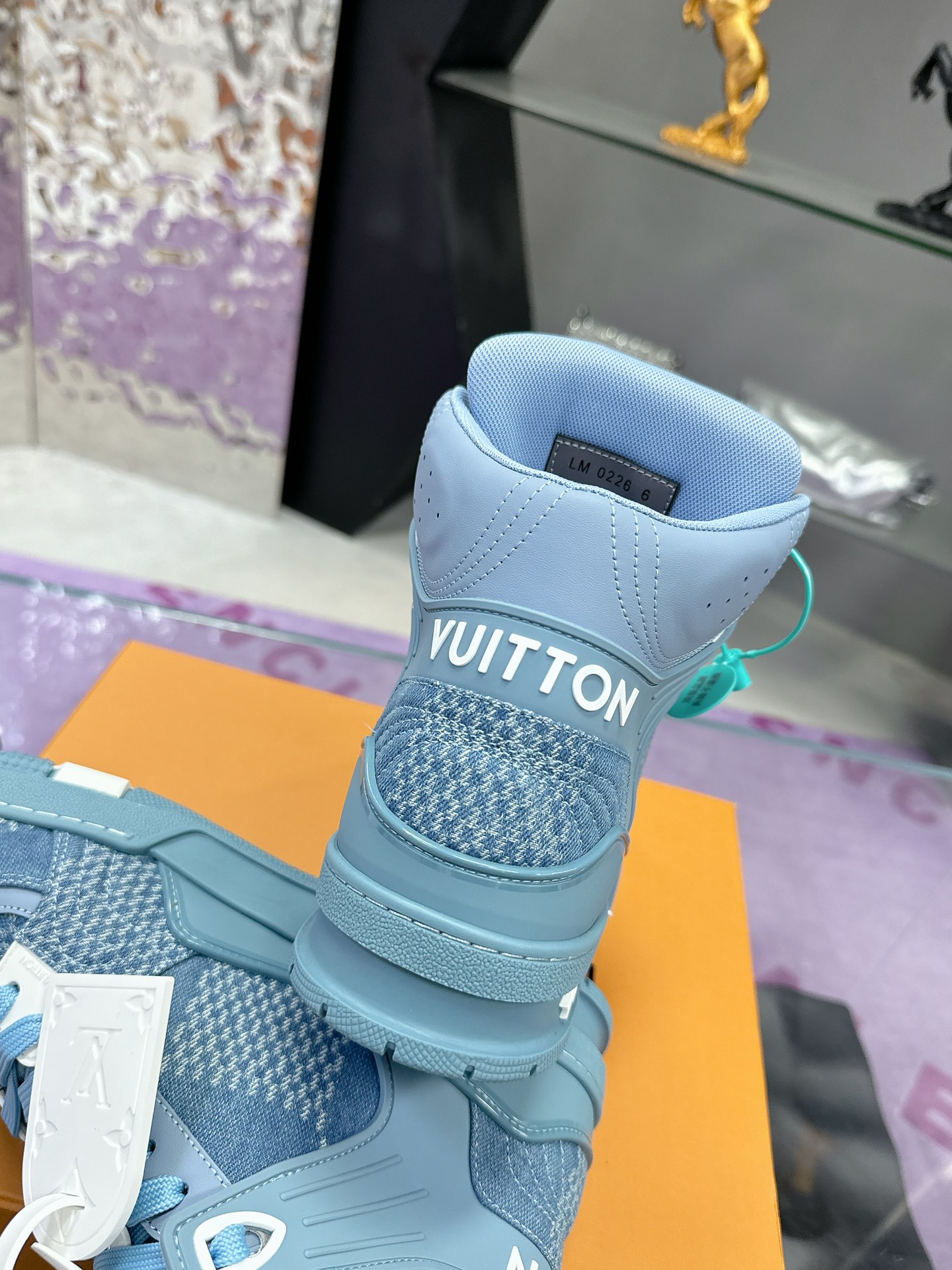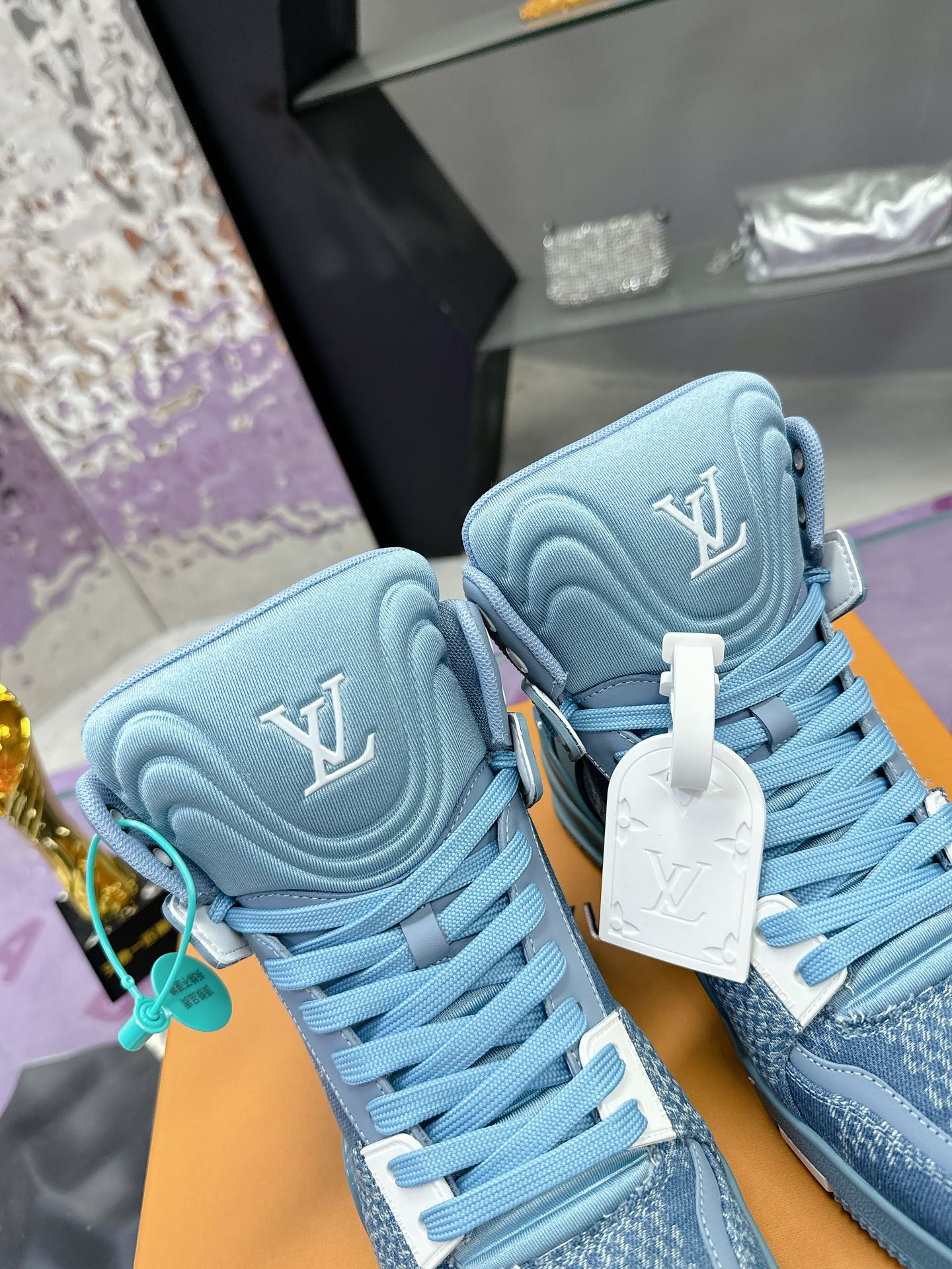 Louis Vuitton Trainer Sneaker Boots ‘Blue’ – White & Blue Monogram Denim – 1:1 Replica Quality – LV-SOR21
