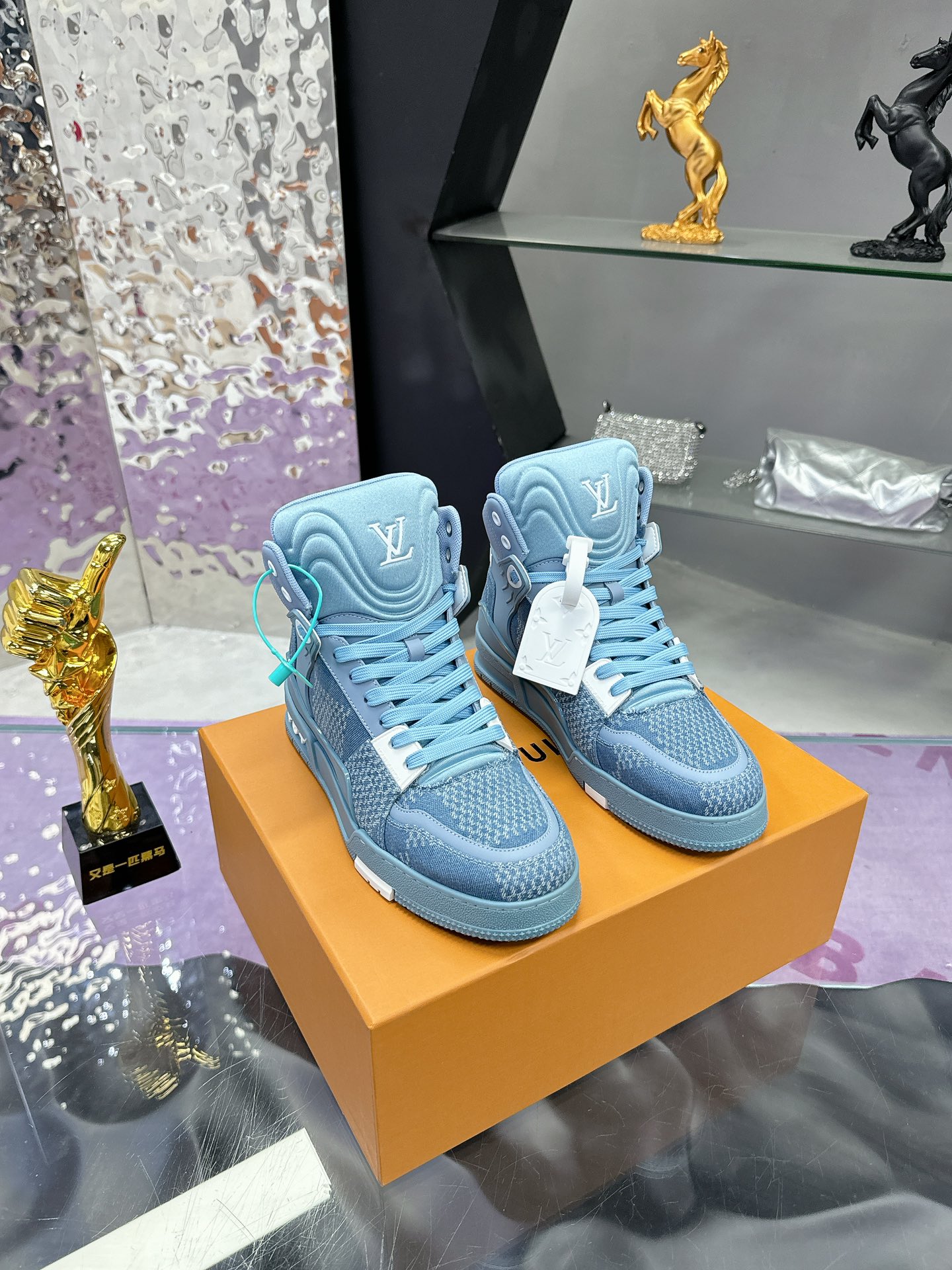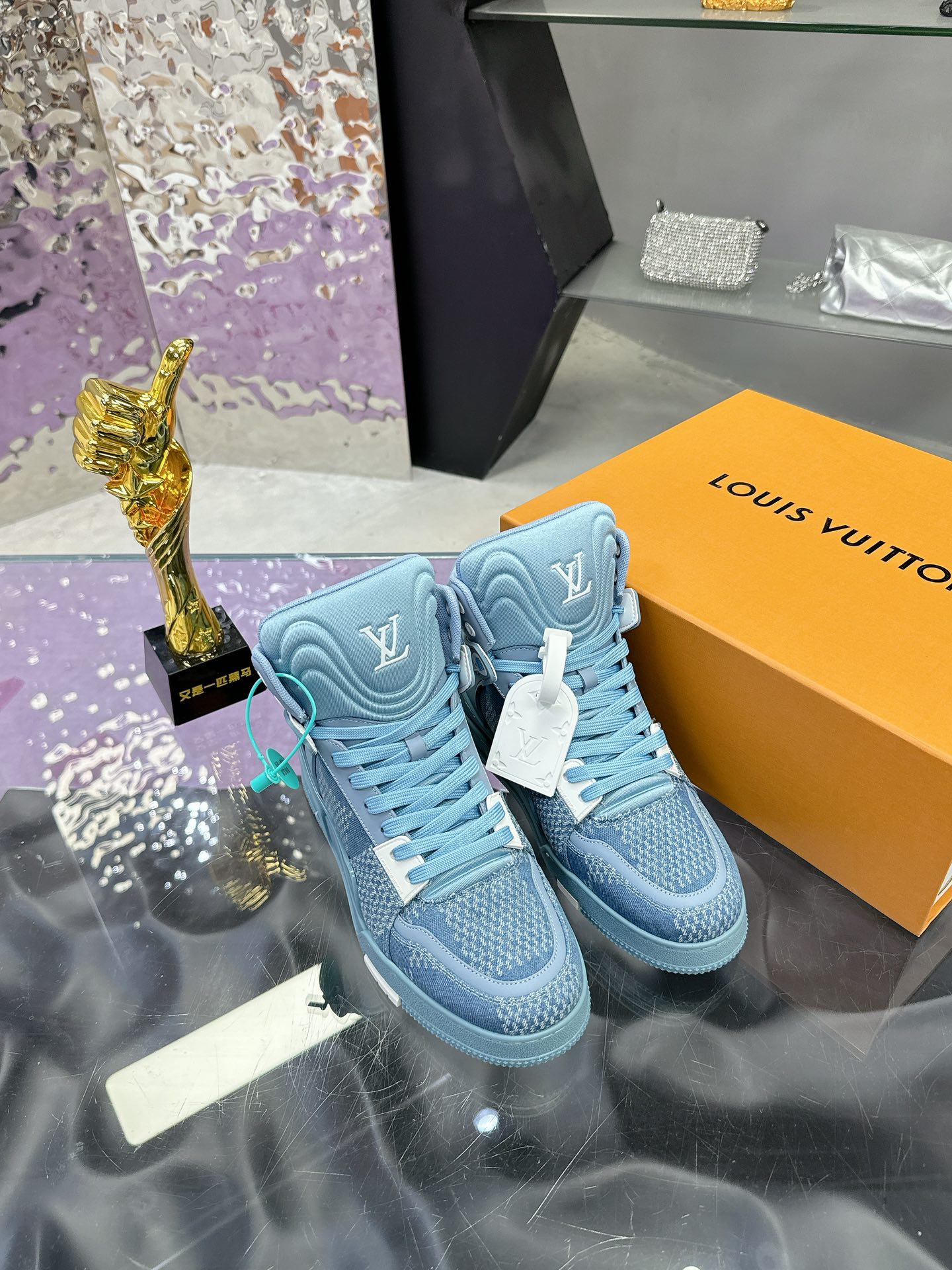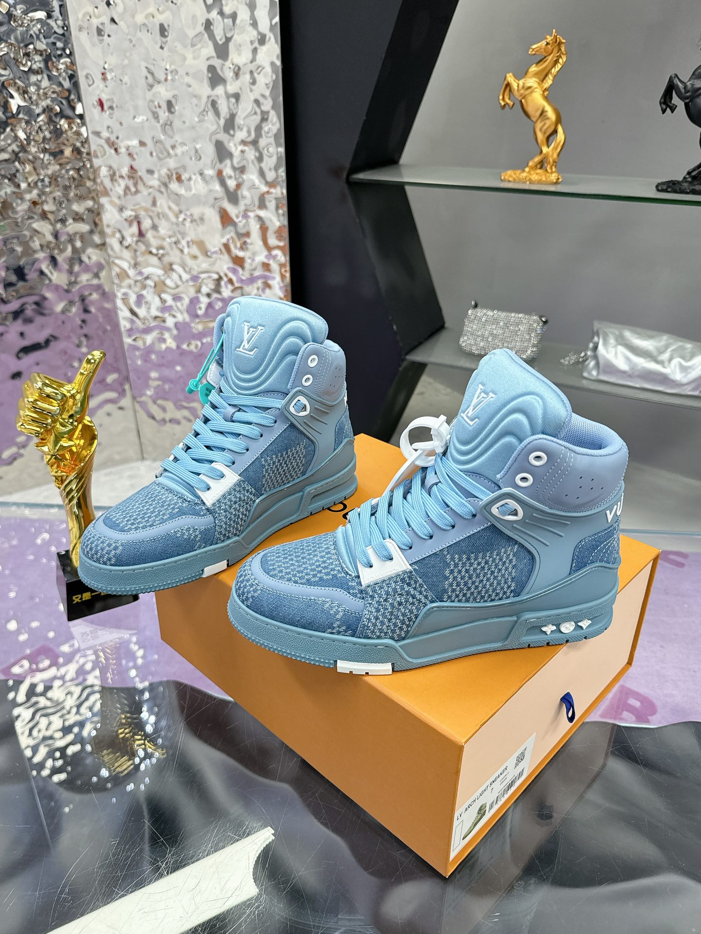 Louis Vuitton Trainer Sneaker Boots ‘Blue’ – White & Blue Monogram Denim – 1:1 Replica Quality – LV-SOR21