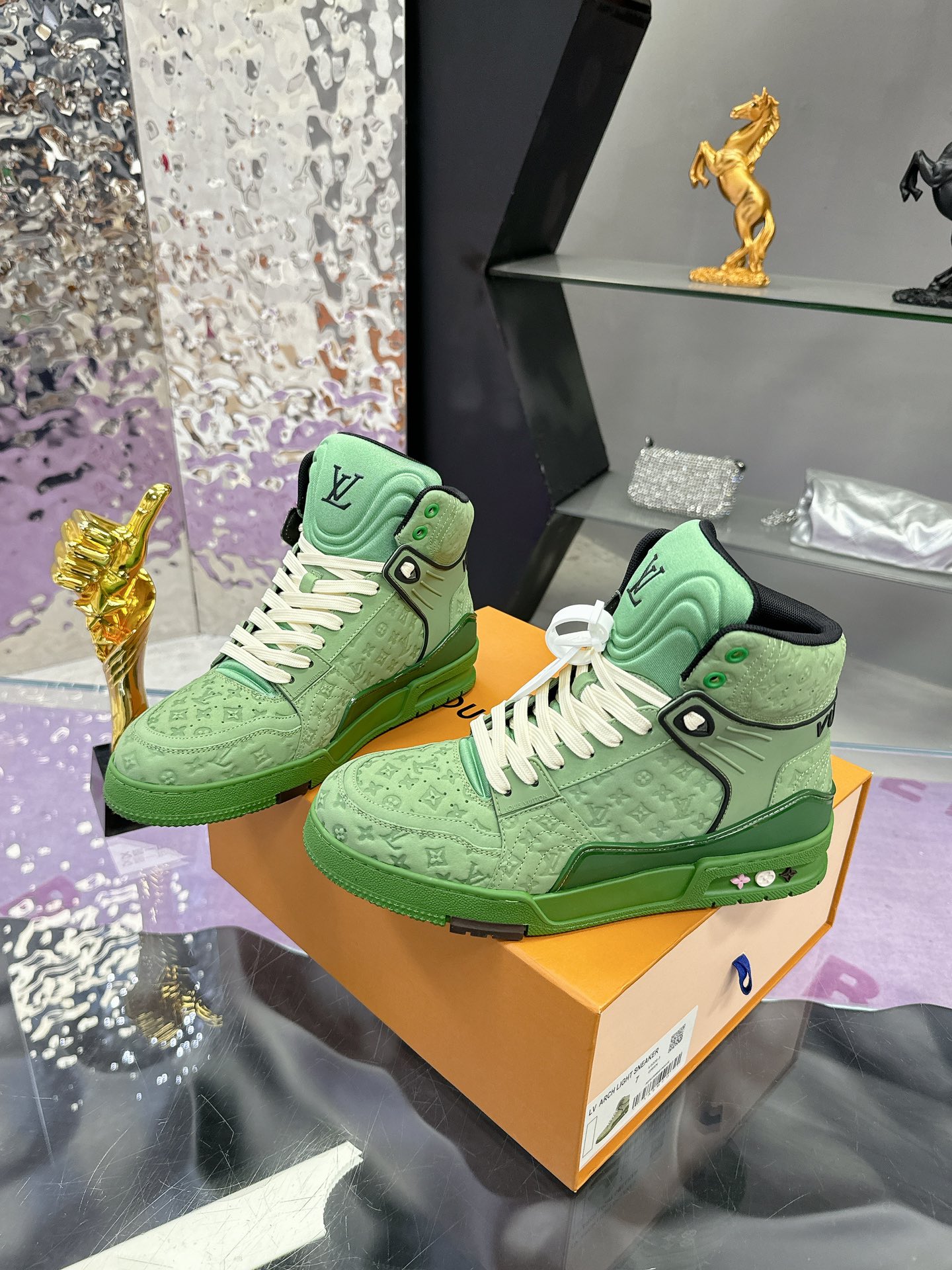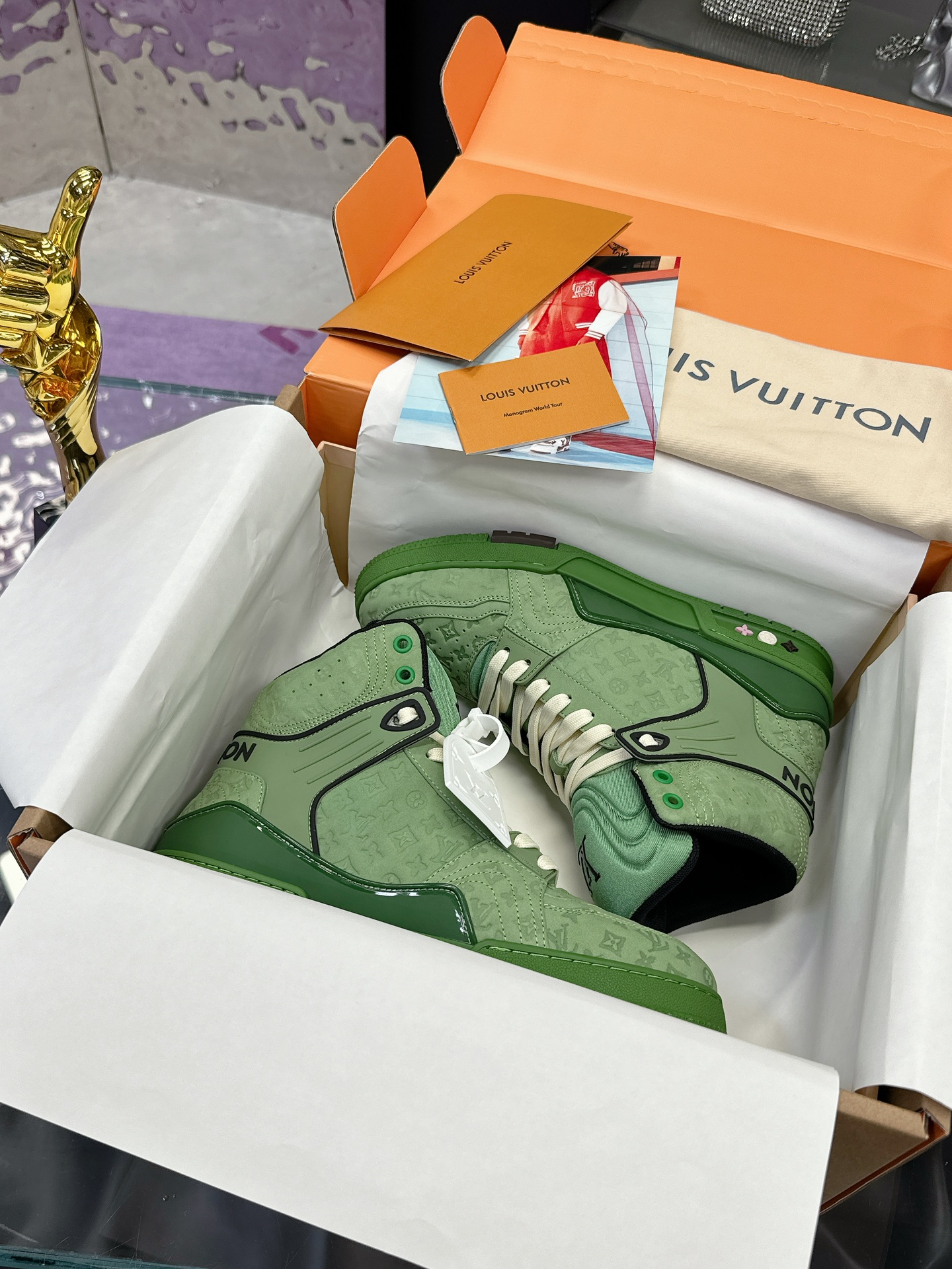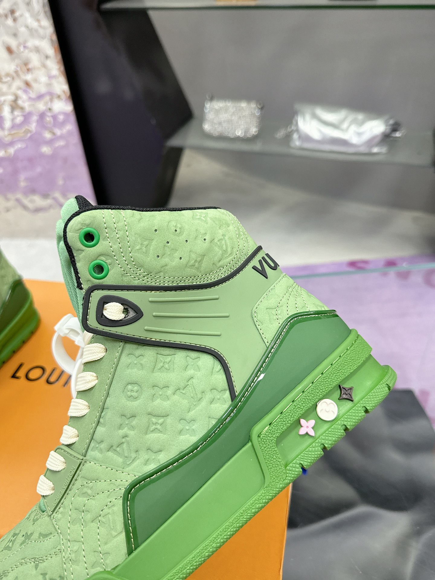 Louis Vuitton Trainer Sneaker Boots ‘Green’ – White & Blue Monogram Denim – 1:1 Replica Quality – LV-SOR22