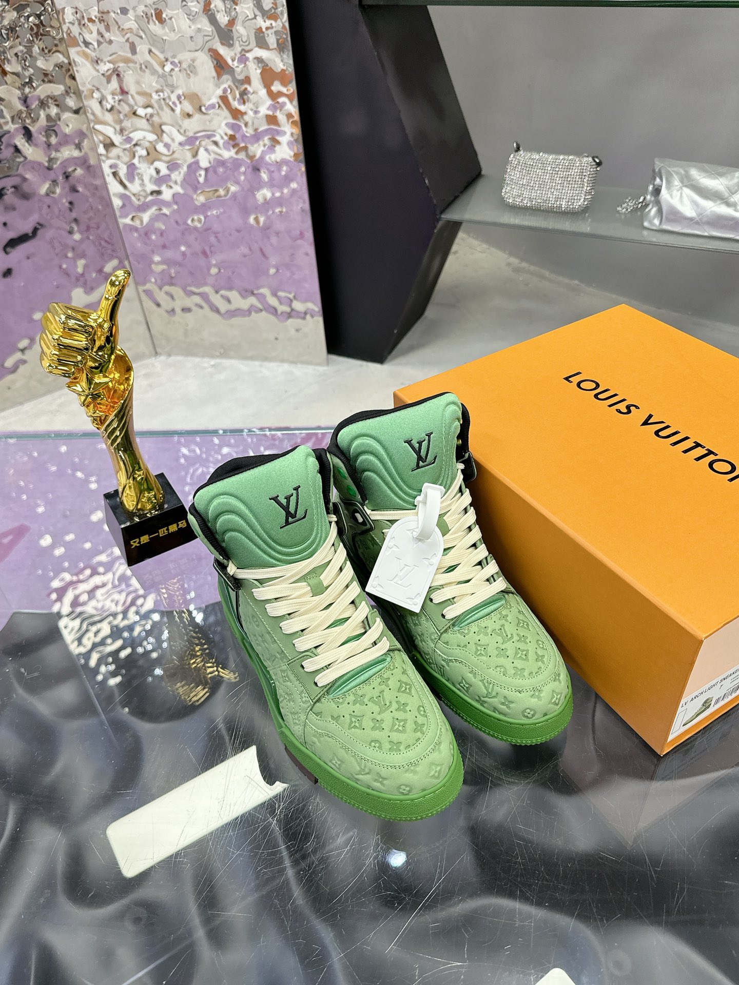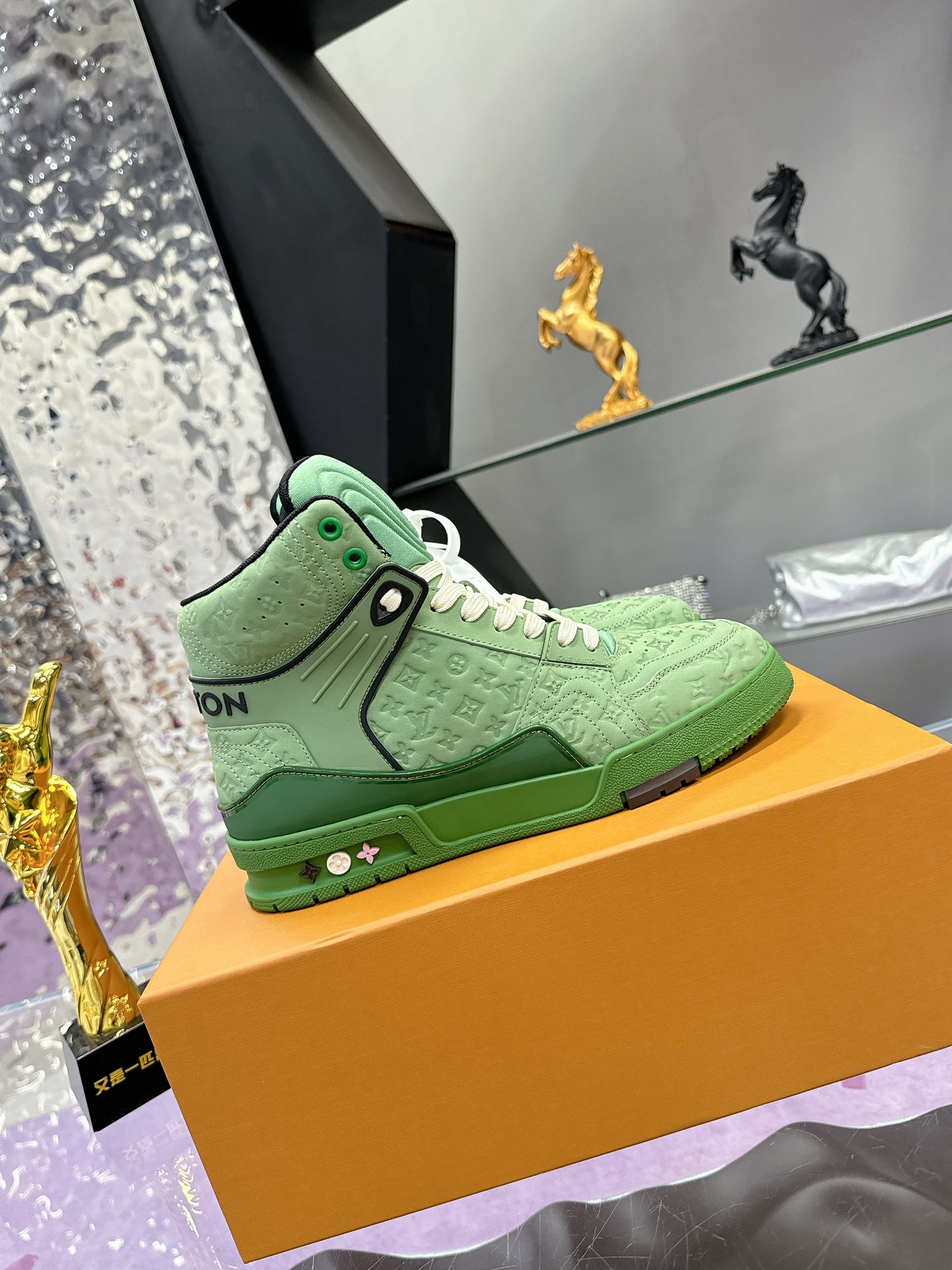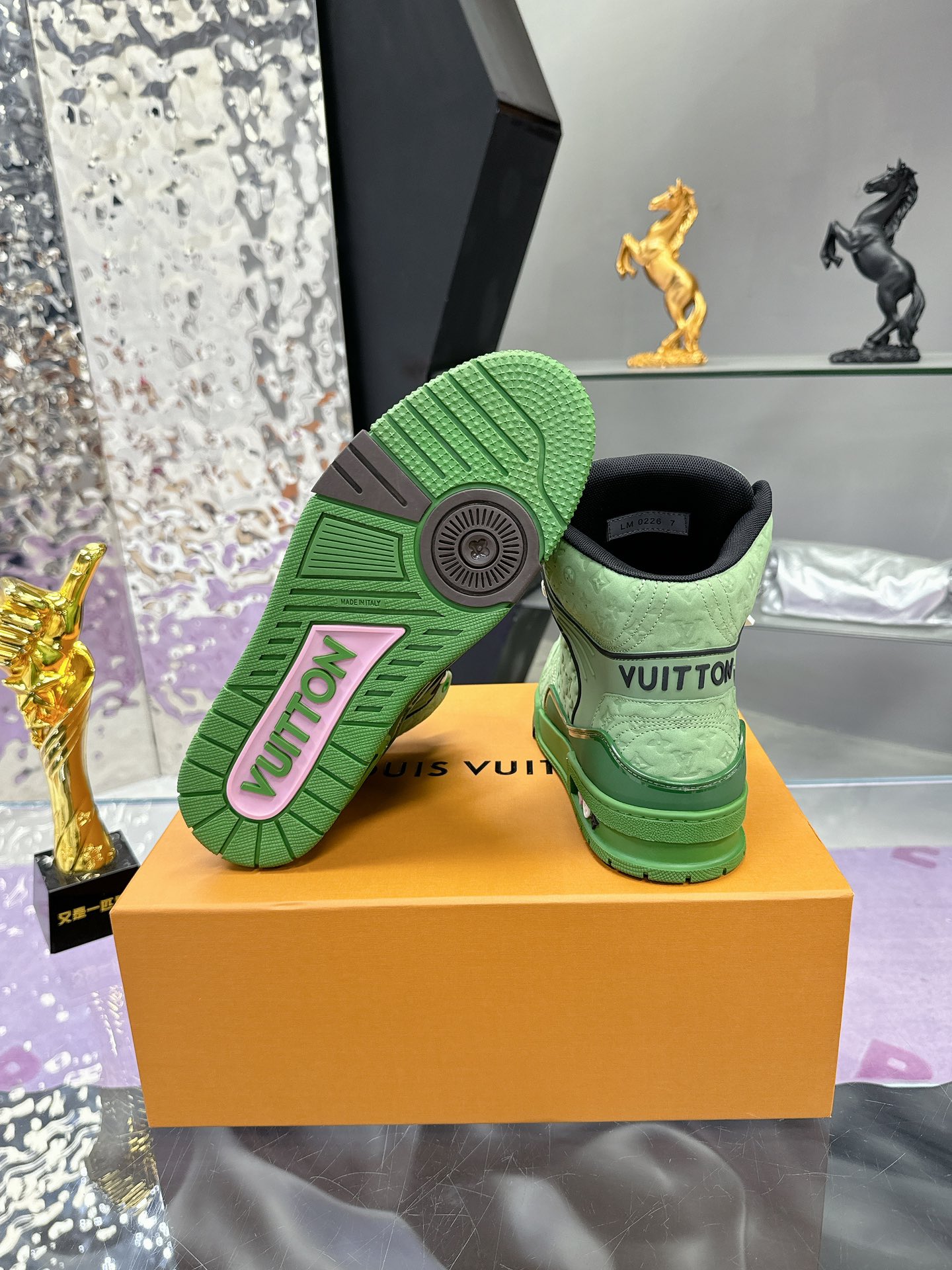 Louis Vuitton Trainer Sneaker Boots ‘Green’ – White & Blue Monogram Denim – 1:1 Replica Quality – LV-SOR22