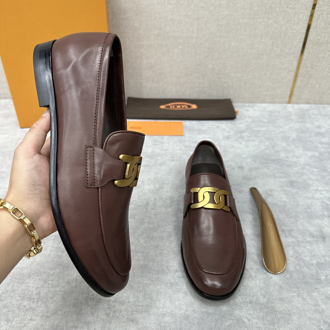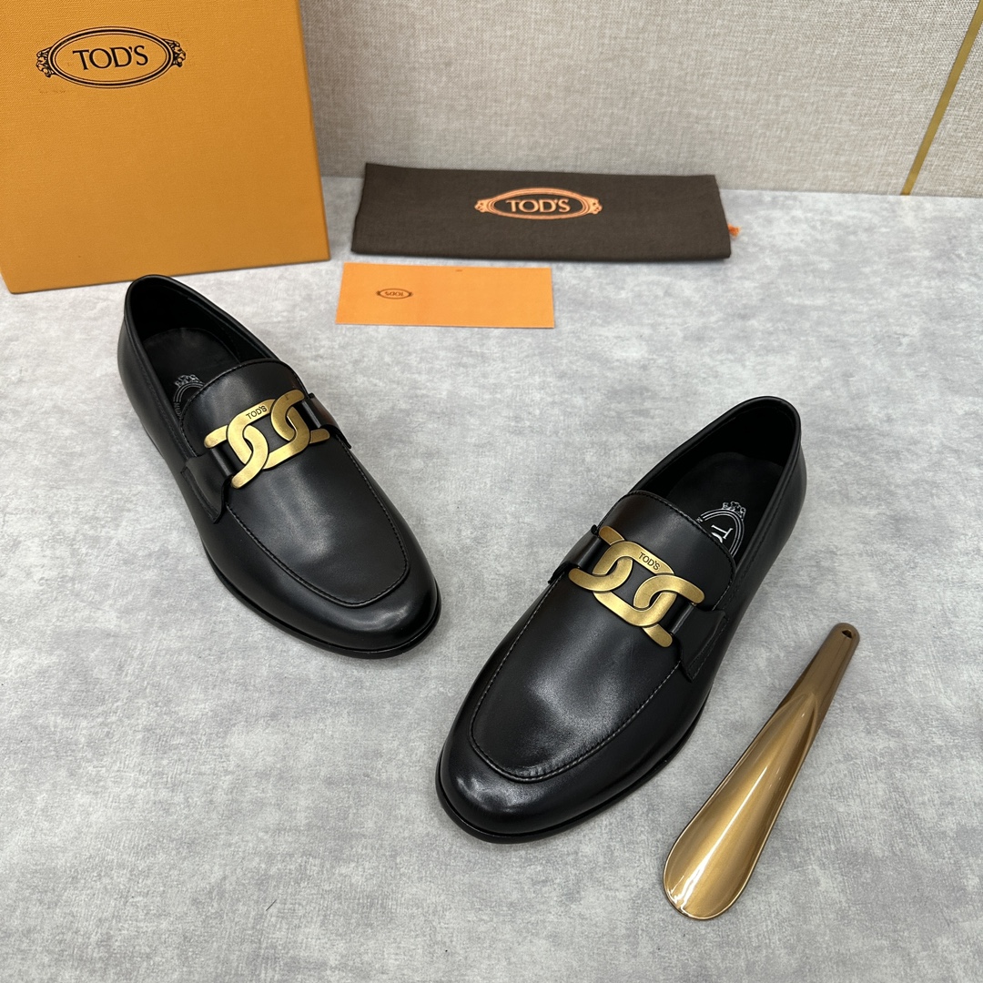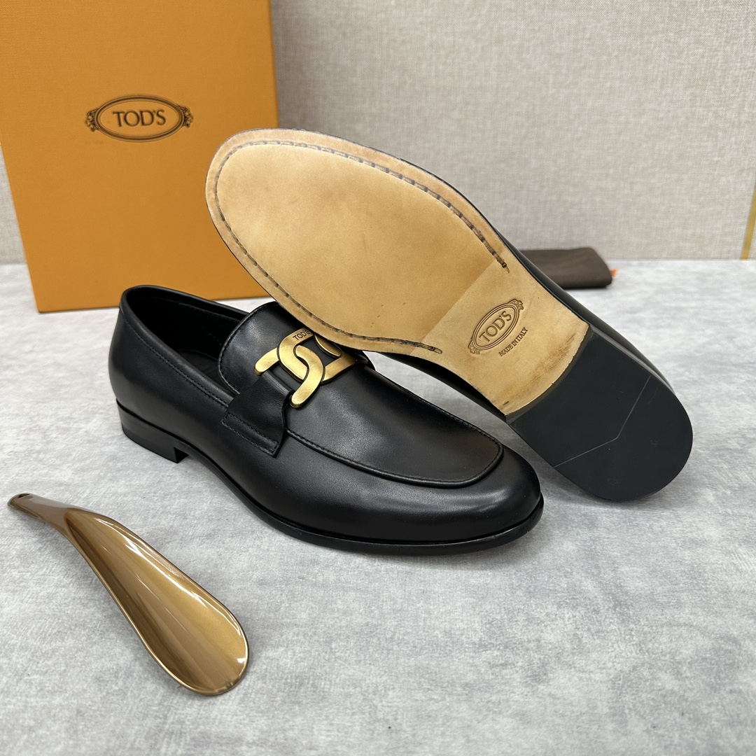 Tod’s Men’s Leather Loafers – Black Chain T-Bar Buckle – 1:1 Replica Quality – TO-SH28